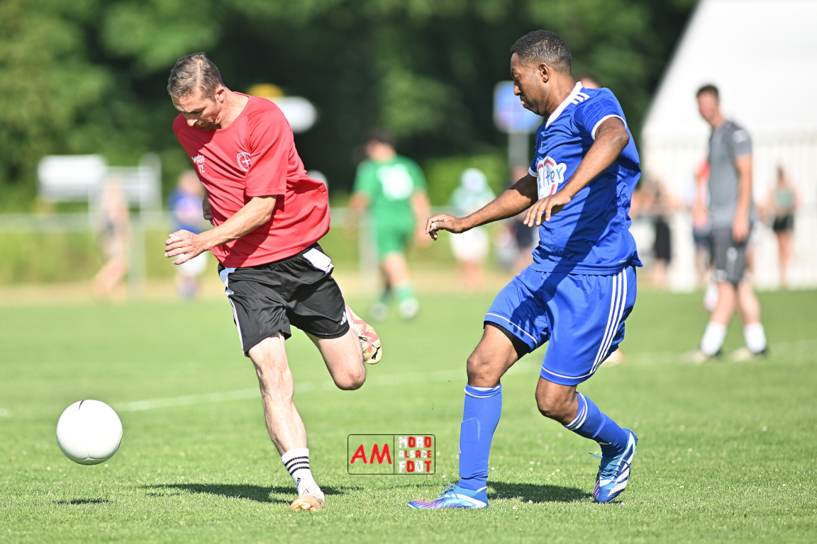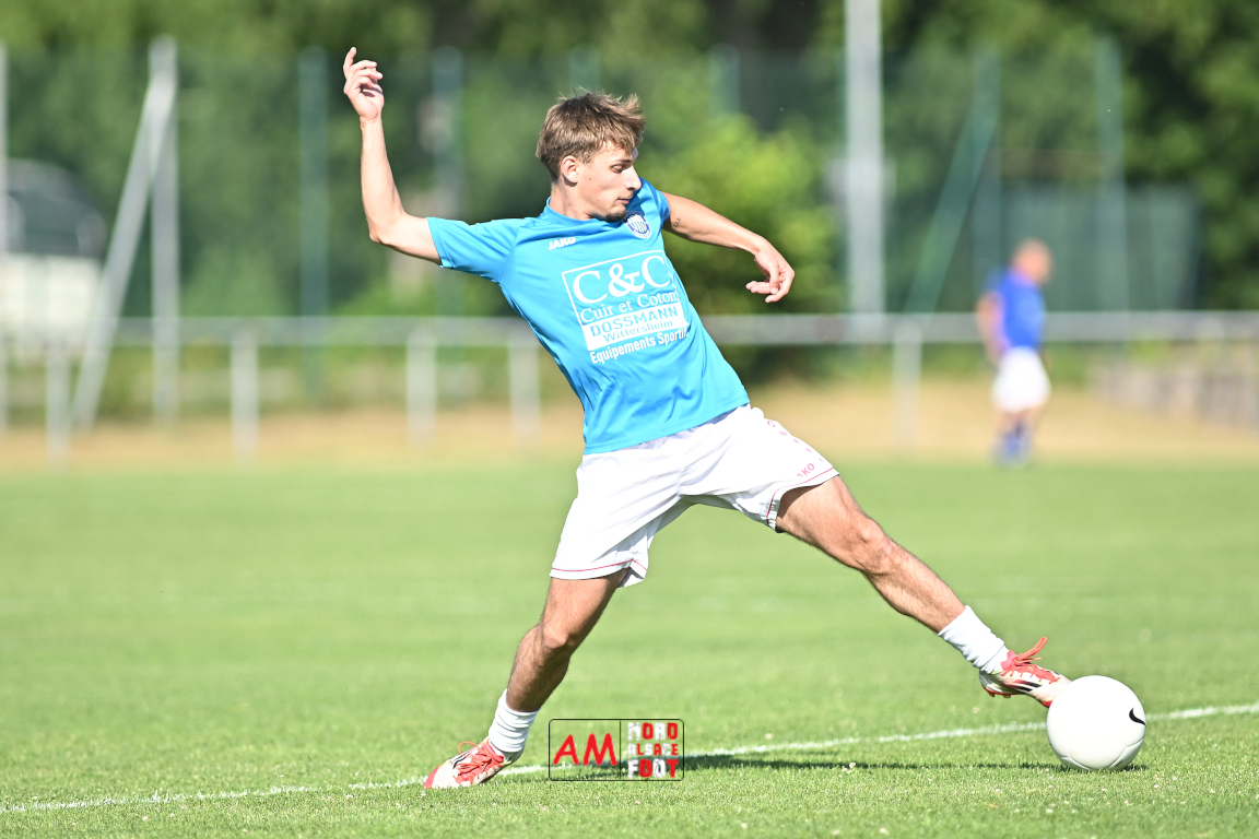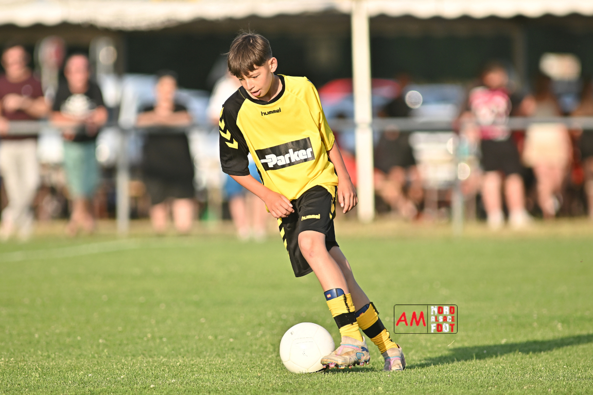 A l’occasion du traditionnel tournoi de sixte étant organisé par le FC Altenstadt, pas moins de quinze équipes se sont données rendez-vous au Stade Martin Fischer afin de tenter de succéder à l’entreprise Schiller Médical. Après un peu plus de quatre heures de débats sur les deux terrains, “La croix d’or” prit la première place de la Poule A et la Boulangerie Hoeltzel finit à la première place de la Poule B. Lors de la finale opposant ces deux équipes, “La croix d’or” finit par s’imposer sur ce score de 2-1. Retrouvez, ci-dessous, quelques images de cette rencontre et, pour en apprécier le contenu, veuillez cliquer sur l’une d’entre elles pour afficher le diaporama.