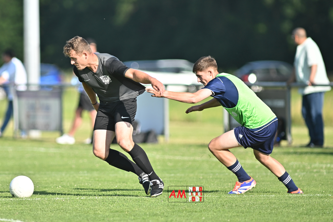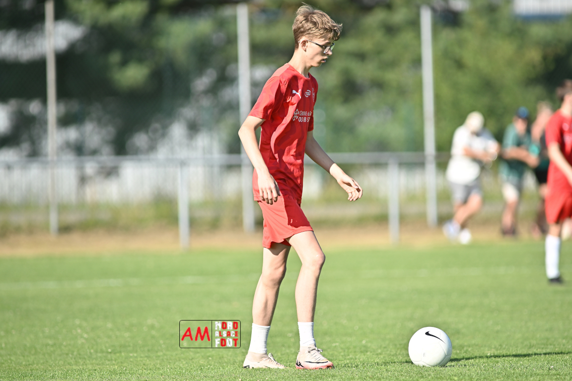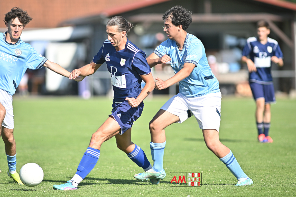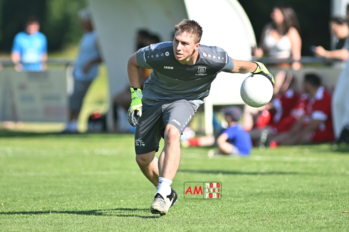 A l’occasion du traditionnel tournoi de sixte étant organisé par le FC Altenstadt, pas moins de quinze équipes se sont données rendez-vous au Stade Martin Fischer afin de tenter de succéder à l’entreprise Schiller Médical. Après un peu plus de quatre heures de débats sur les deux terrains, “La croix d’or” prit la première place de la Poule A et la Boulangerie Hoeltzel finit à la première place de la Poule B. Lors de la finale opposant ces deux équipes, “La croix d’or” finit par s’imposer sur ce score de 2-1. Retrouvez, ci-dessous, quelques images de cette rencontre et, pour en apprécier le contenu, veuillez cliquer sur l’une d’entre elles pour afficher le diaporama.