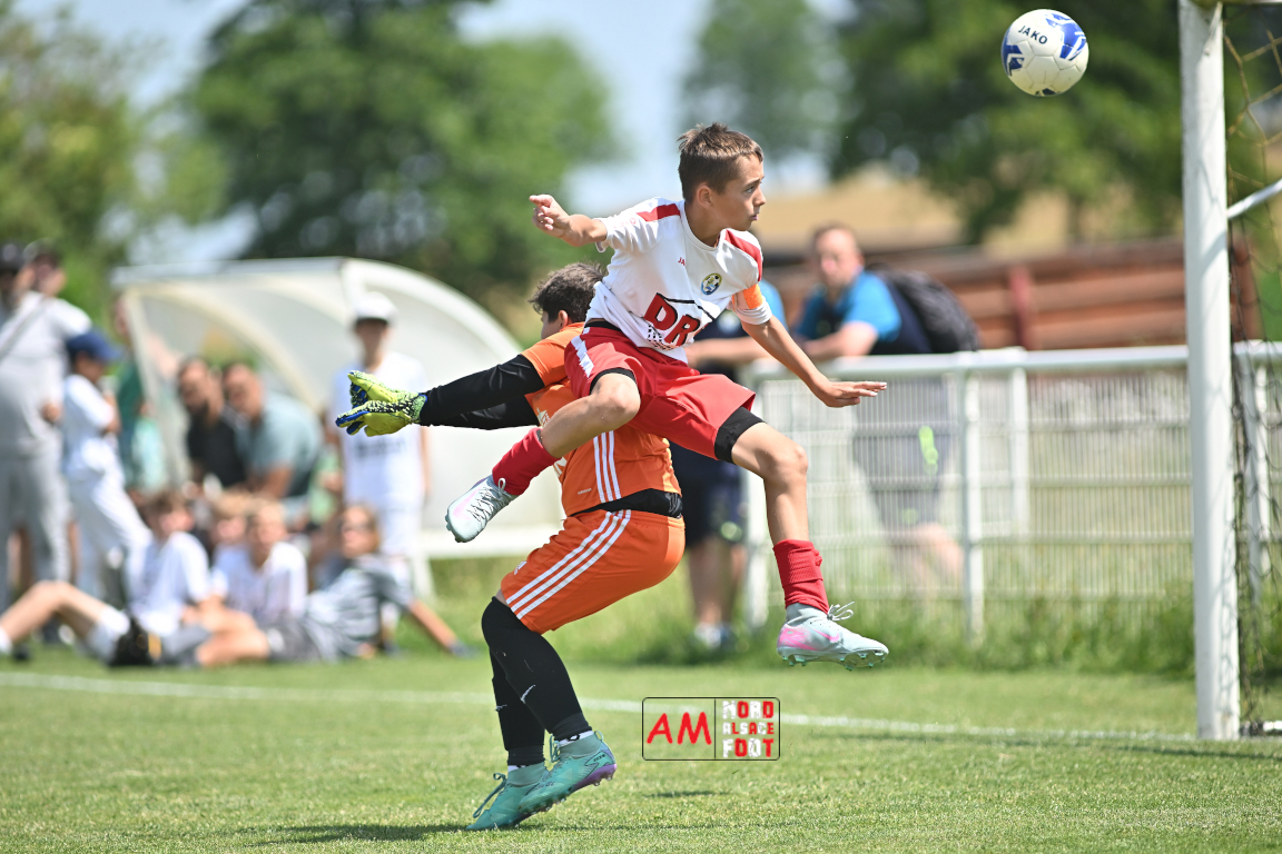 A l’occasion de la cinquième édition du Challenge Hugo Beill, pas moins de quinze équipes de la catégorie U13 se sont données rendez-vous sur les installations de l’US Oberlauterbach afin de prendre part au traditionnel tournoi annuel. Le tournoi s’est déroulé en deux phases: la phase matinale au cours de laquelle les équipes ont évolués dans quatre groupes sous forme de mini championnat et la phase finale. En finale de ce tournoi, les U13-1 de la Section Jeunes Surbourg/Betschdorf étaient opposés aux U13-1 du FR Haguenau et c’est les Haguenoviens qui se sont imposés sur le plus petit des scores. Retrouvez, ci-dessous, quelques images de ce tournoi et, pour en apprécier le contenu, veuillez cliquer sur l’une d’entre elles pour afficher le diaporama.