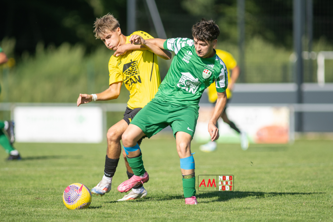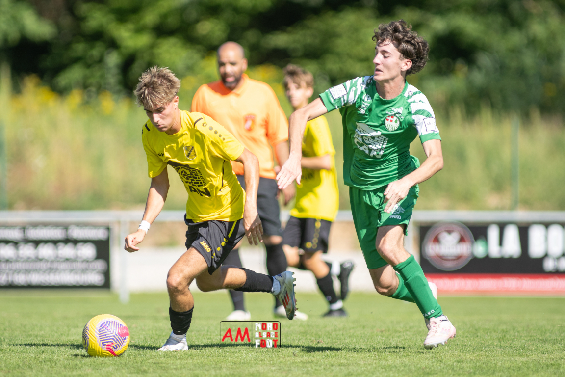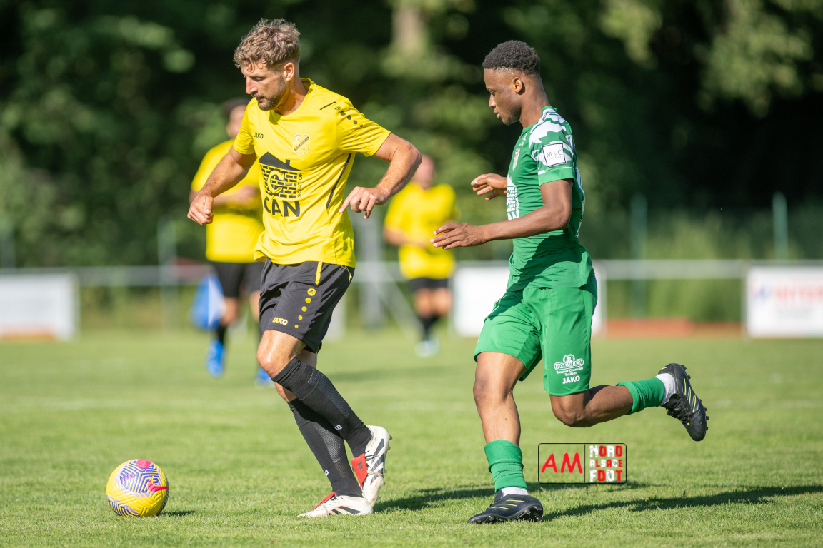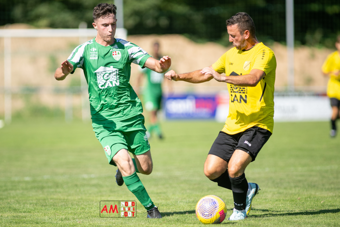 A l’occasion du second match amical comptant pour la troisième et dernière journée de la fête sportive ayant été organisé par le FC Scheibenhard, le FC Scheibenhard 2 (District 4) accueillait l’US Schleithal 2 (District 4) afin de tenter de peaufiner les derniers réglages avant le début de la compétition officielle intervenant dans deux semaines. Après une première période se soldant par un avantage confortable en faveur des visiteurs (0-2), les locaux allaient réduire la marque avant que leurs adversaires n’inscrivent deux buts supplémentaire leur permettant de s’imposer sur ce score de 1-4. Retrouvez, ci-dessous, quelques images de cette rencontre et, pour en apprécier le contenu, veuillez cliquer sur l’une d’entre elles pour afficher le diaporama.