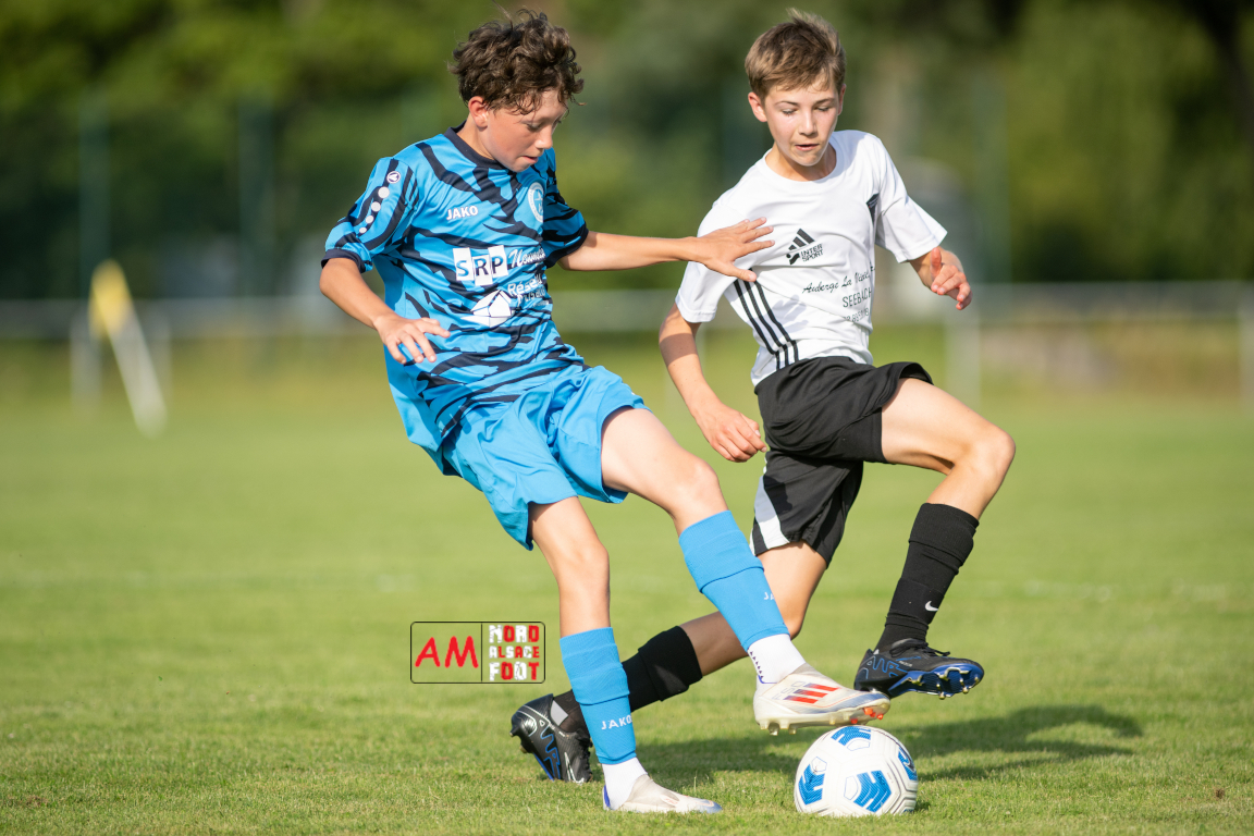 A l’occasion d’un match de préparation se déroulant sur les installations du FC Altenstadt, les U14 du Groupement Jeunes d’Alsace du Nord (Régional 2) accueillaient les U15 du FCE Schirrhein (U15/D3) afin de tenter de trouver les premiers automatismes avant la reprise du championnat intervenant dans trois semaines. Après une première période se soldant par un avantage confortable en faveur des protégés de Christophe Ambos (3-1), ces derniers allaient un peu plus creuser l’écart en seconde période en ajoutant trois buts au compteur avant qu’ils ne finissent par s’imposer sur ce score de 6-1. Retrouvez, ci-dessous, quelques images de cette rencontre et, pour en apprécier le contenu, veuillez cliquer sur l’une d’entre elles pour afficher le diaporama.