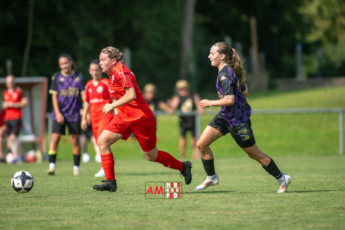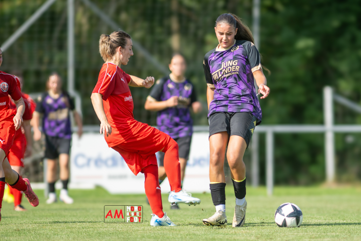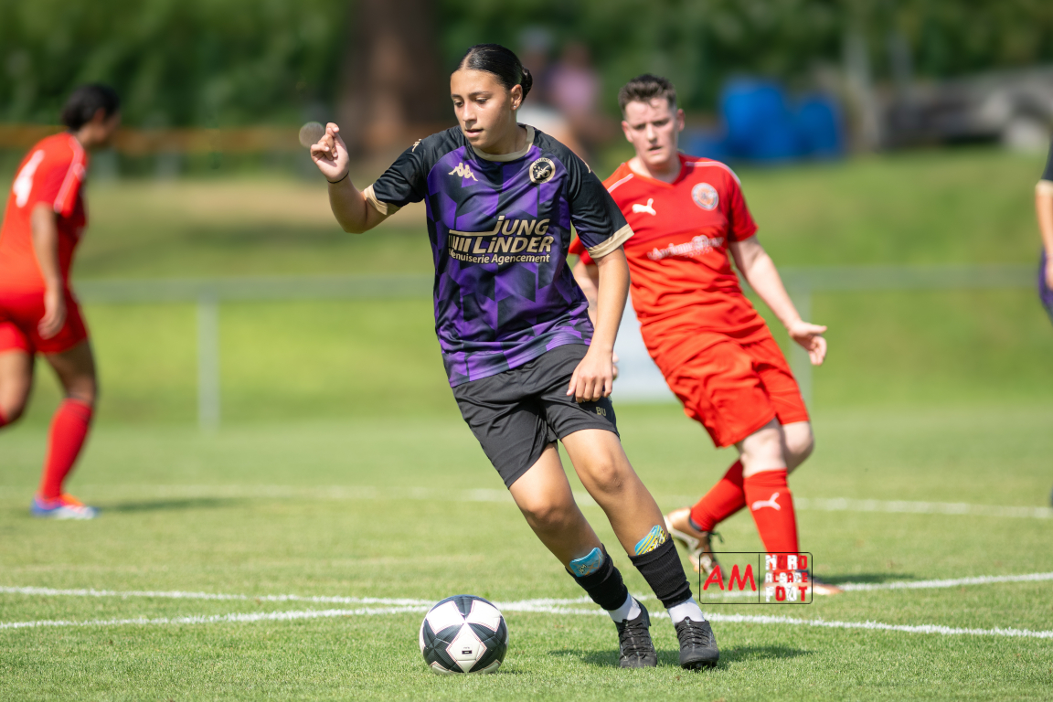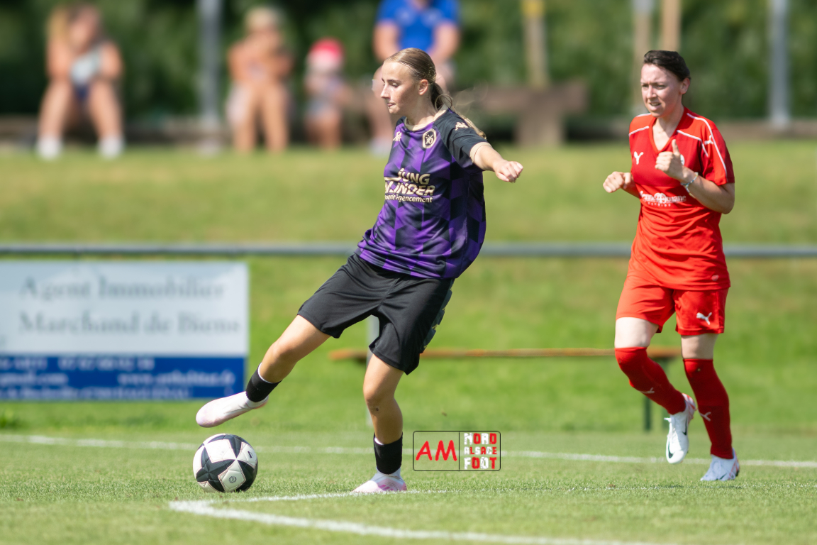 A l’occasion du premier match comptant pour la deuxième journée de la fête d’été étant organisée par l’AS Copains Hinterfeld, l’ASC Hinterfeld F (District 1) accueillaient les U18/F de l’entente Trois Maisons/Phalsbourg (Régional 2) afin de tenter de travailler les premiers réglages avant leur entrée en lice en Coupe de France le 7 septembre prochain. Après une première période se soldant par un large avantage en faveur des visiteuses (0-3), ces dernières allaient ajouter deux buts au compteur en seconde période avant qu’elles ne finissent par s’imposer sur ce score de 0-5. Retrouvez, ci-dessous, quelques images de cette rencontre et, pour en apprécier le contenu, veuillez cliquer sur l’une d’entre elles pour afficher le diaporama.