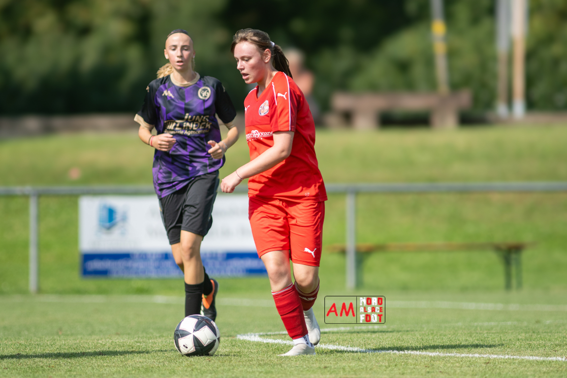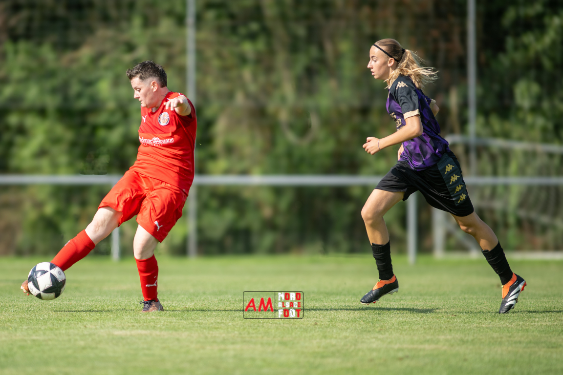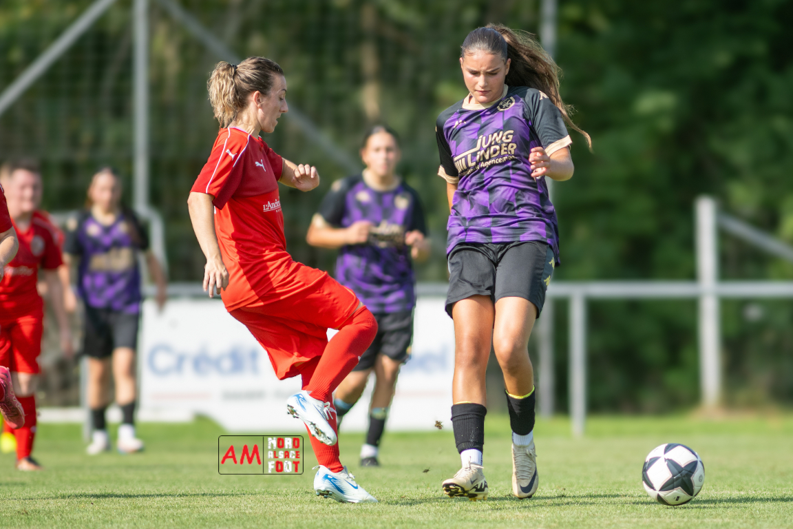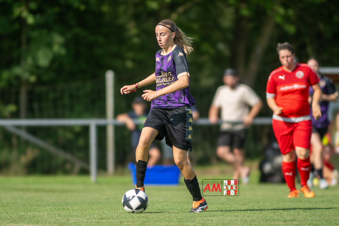 A l’occasion du premier match comptant pour la deuxième journée de la fête d’été étant organisée par l’AS Copains Hinterfeld, l’ASC Hinterfeld F (District 1) accueillaient les U18/F de l’entente Trois Maisons/Phalsbourg (Régional 2) afin de tenter de travailler les premiers réglages avant leur entrée en lice en Coupe de France le 7 septembre prochain. Après une première période se soldant par un large avantage en faveur des visiteuses (0-3), ces dernières allaient ajouter deux buts au compteur en seconde période avant qu’elles ne finissent par s’imposer sur ce score de 0-5. Retrouvez, ci-dessous, quelques images de cette rencontre et, pour en apprécier le contenu, veuillez cliquer sur l’une d’entre elles pour afficher le diaporama.