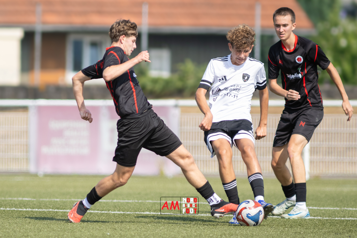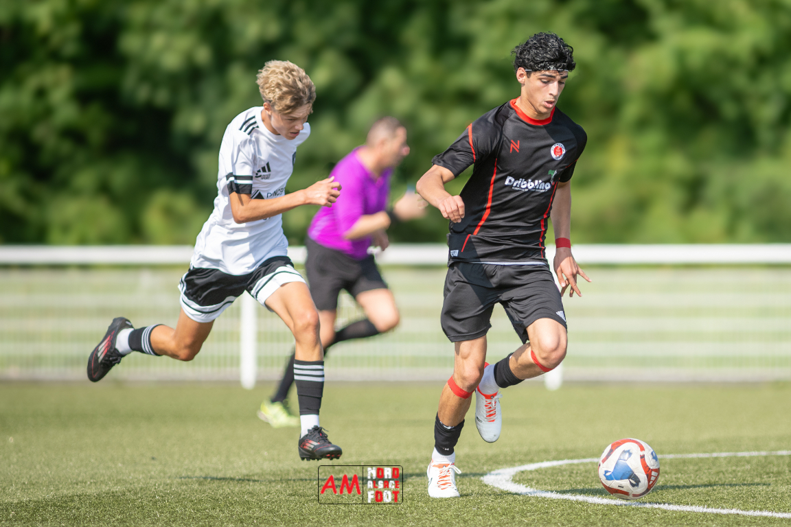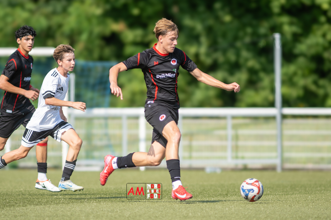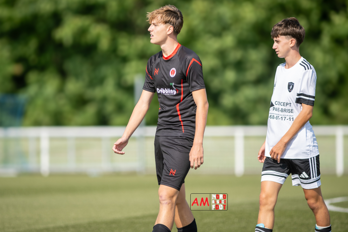 A l’occasion d’un match de préparation les U15/R2 du Groupement Jeunes d’Alsace du Nord accueillaient les B-Junioren du SV Sinzheim afin de tenter de travailler les premiers automatismes. Après une première période se soldant par un court avantage en faveur des Allemands (0-1), ces derniers allaient prendre le large en deuxième période en ajoutant cinq buts au compteur tout en en encaissant un, le SV Zinzheim finissant donc par s’imposer sur ce score de 1-6. Retrouvez, ci-dessous, quelques images de cette rencontre et, pour en apprécier le contenu, veuillez cliquer sur l’une d’entre elles pour afficher le diaporama.