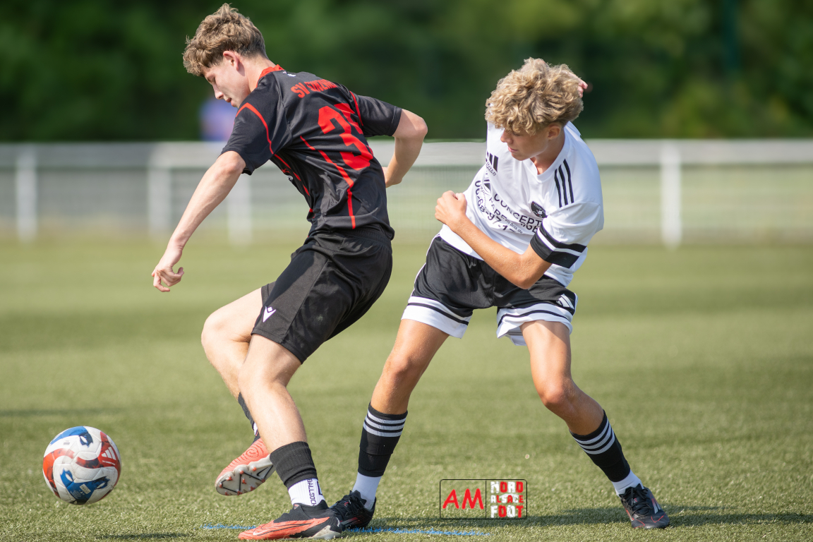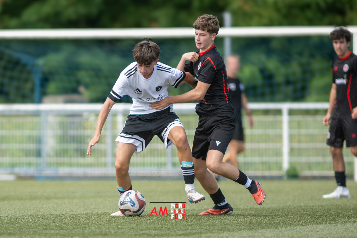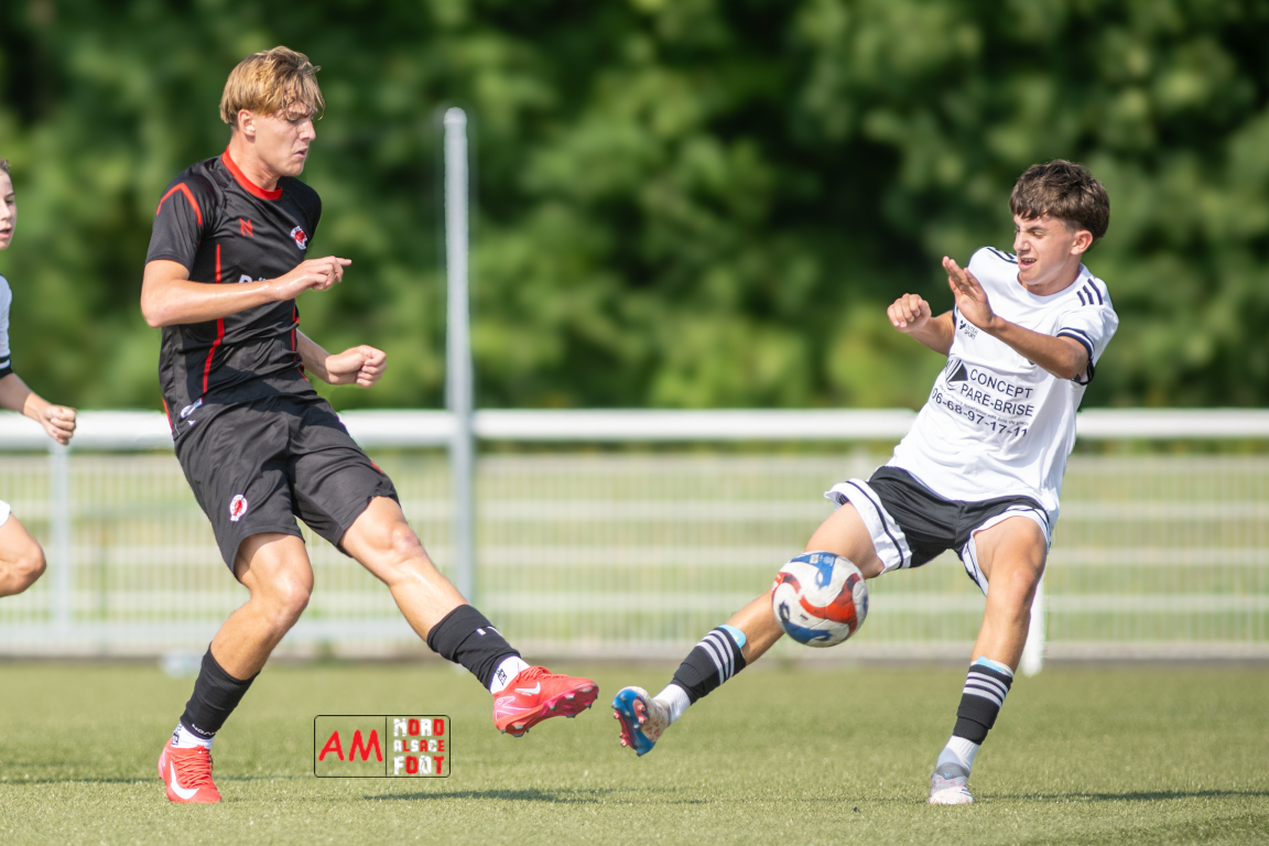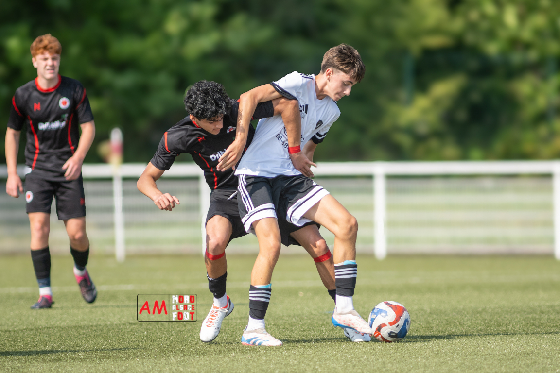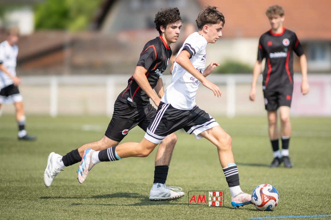 A l’occasion d’un match de préparation les U15/R2 du Groupement Jeunes d’Alsace du Nord accueillaient les B-Junioren du SV Sinzheim afin de tenter de travailler les premiers automatismes. Après une première période se soldant par un court avantage en faveur des Allemands (0-1), ces derniers allaient prendre le large en deuxième période en ajoutant cinq buts au compteur tout en en encaissant un, le SV Zinzheim finissant donc par s’imposer sur ce score de 1-6. Retrouvez, ci-dessous, quelques images de cette rencontre et, pour en apprécier le contenu, veuillez cliquer sur l’une d’entre elles pour afficher le diaporama.