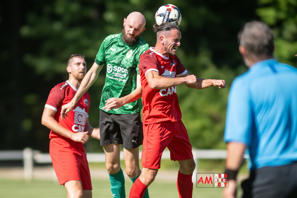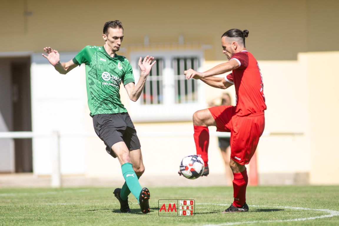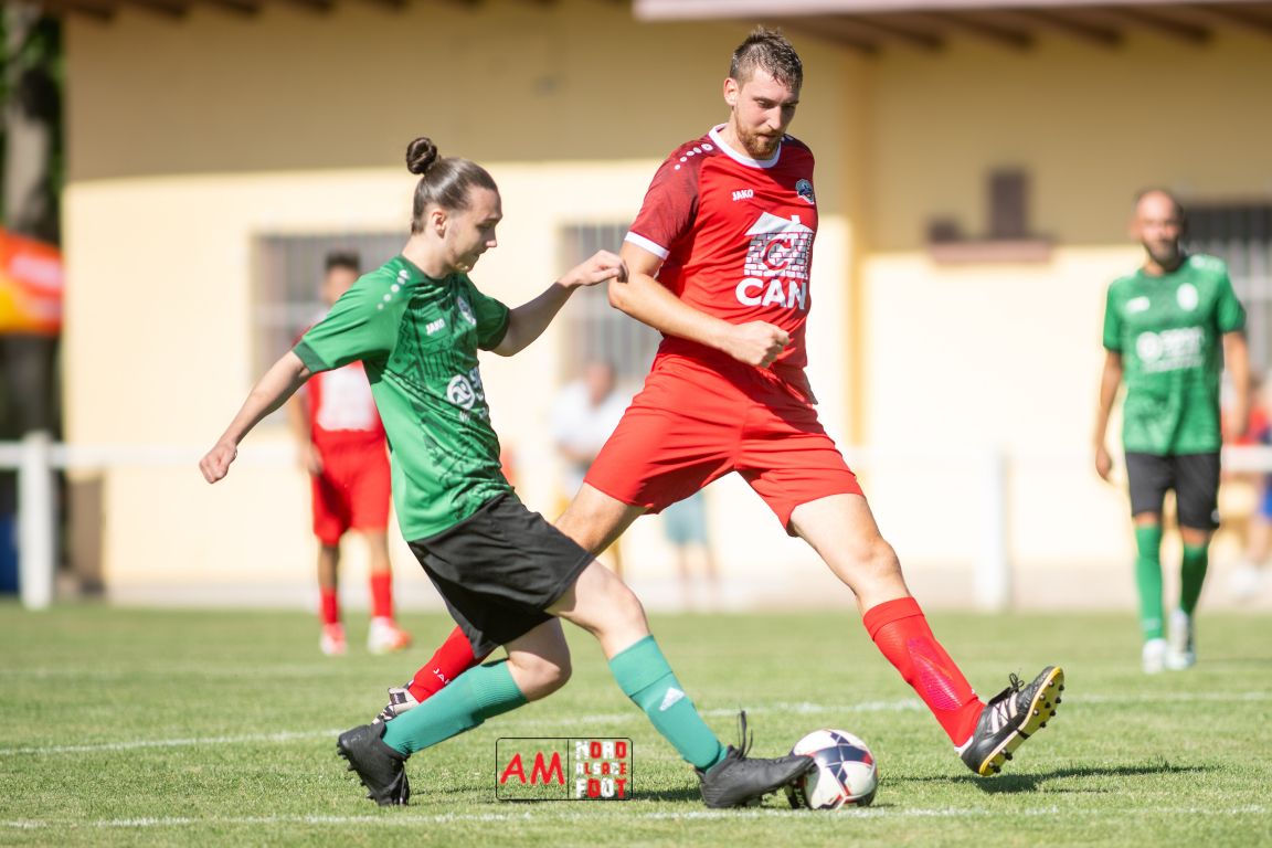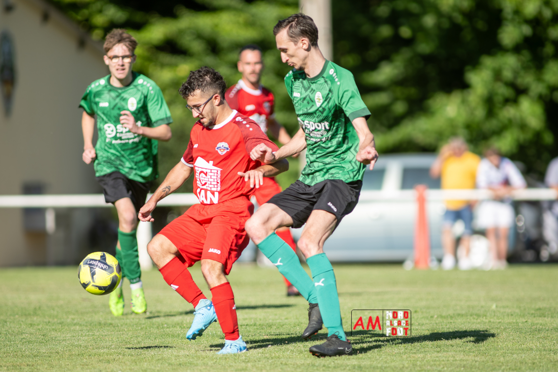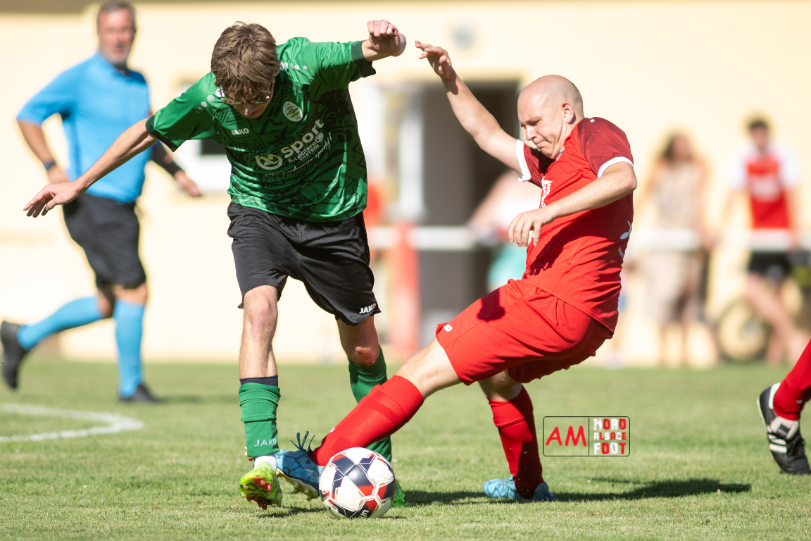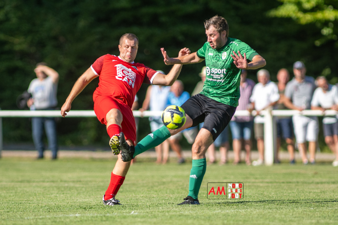 A l’occasion du premier tour de la Coupe de France – Crédit Agricole, le FR Schoenenbourg/M. (District 5) accueillait leurs voisins du FC Soultz/s/Forêt/Kutzenhausen (District 2) afin de tenter de créer un petit exploit dans ce derby de l’Outre-Forêt. Après une première période se soldant par un court avantage en faveur des locaux grâce à un but inscrit par Julien Beck (12e), le score n’évolua pas en seconde période et “Schoemé” se qualifia pour le tour suivant sur le plus petit des scores. Retrouvez, ci-dessous, quelques images de cette rencontre et, pour en apprécier le contenu, veuillez cliquer sur l’une d’entre elles pour afficher le diaporama.