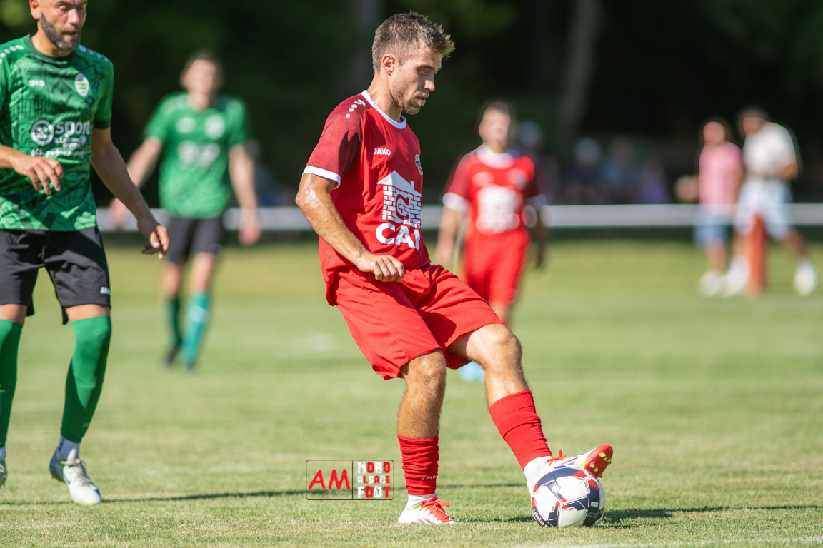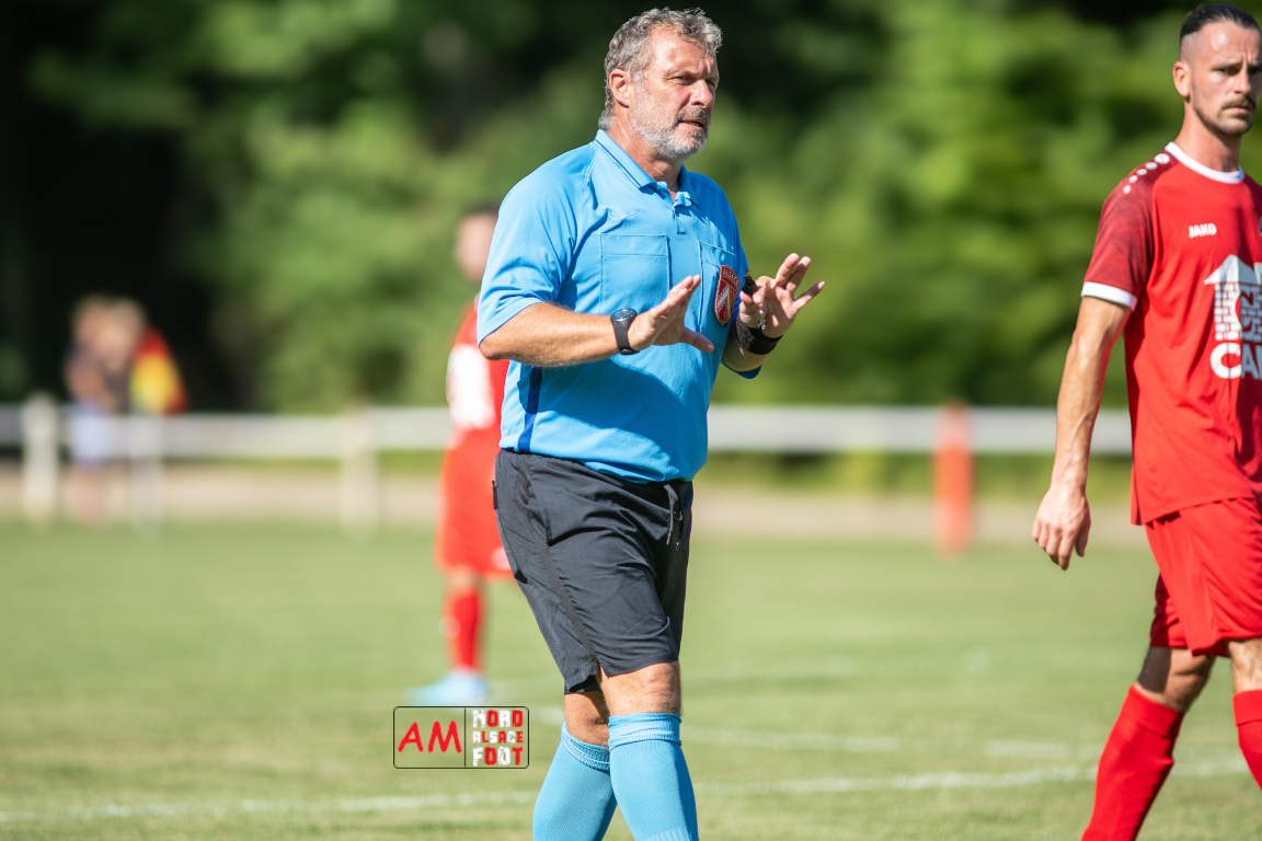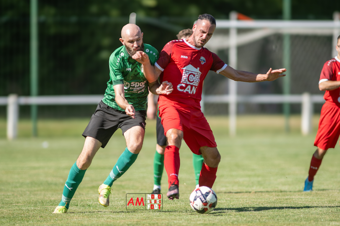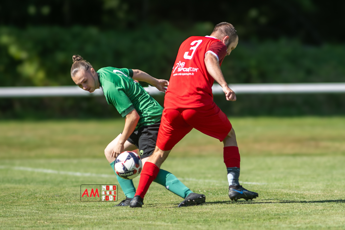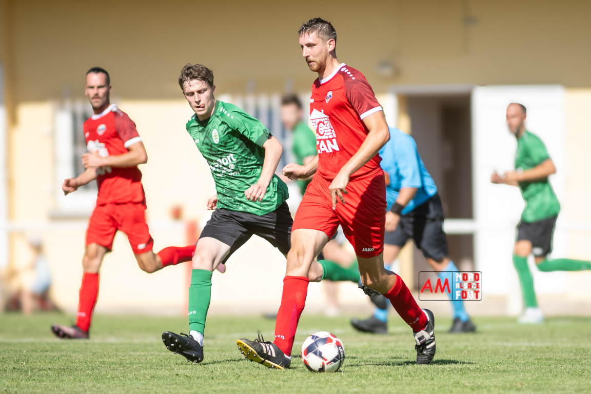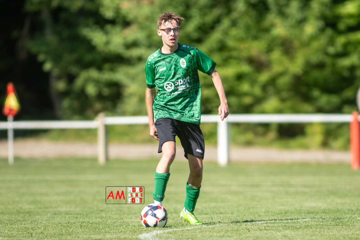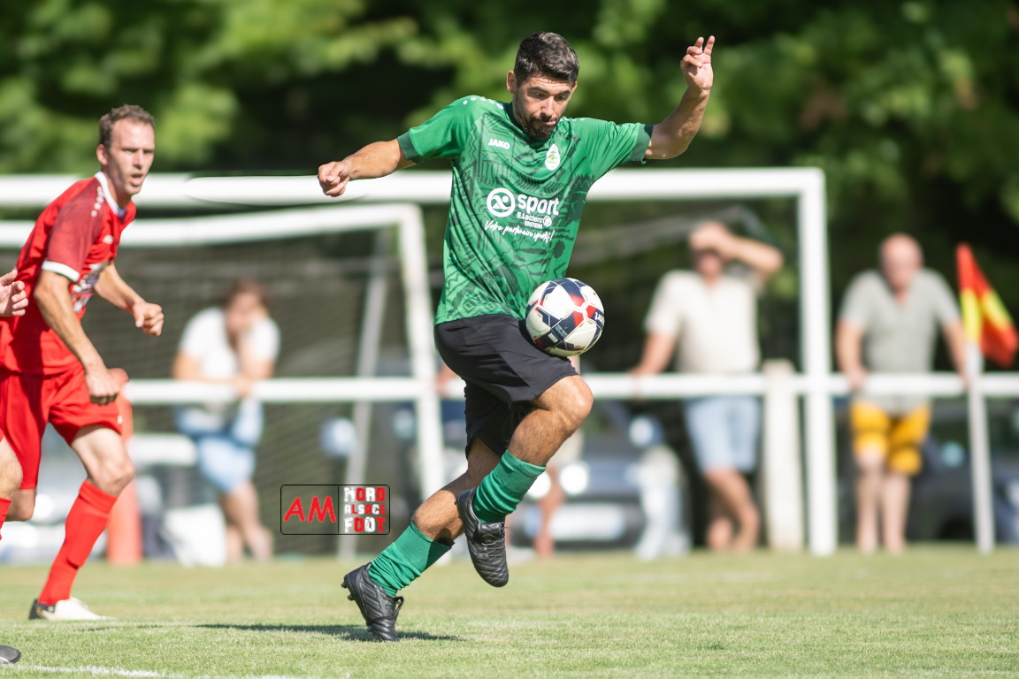 A l’occasion du premier tour de la Coupe de France – Crédit Agricole, le FR Schoenenbourg/M. (District 5) accueillait leurs voisins du FC Soultz/s/Forêt/Kutzenhausen (District 2) afin de tenter de créer un petit exploit dans ce derby de l’Outre-Forêt. Après une première période se soldant par un court avantage en faveur des locaux grâce à un but inscrit par Julien Beck (12e), le score n’évolua pas en seconde période et “Schoemé” se qualifia pour le tour suivant sur le plus petit des scores. Retrouvez, ci-dessous, quelques images de cette rencontre et, pour en apprécier le contenu, veuillez cliquer sur l’une d’entre elles pour afficher le diaporama.
