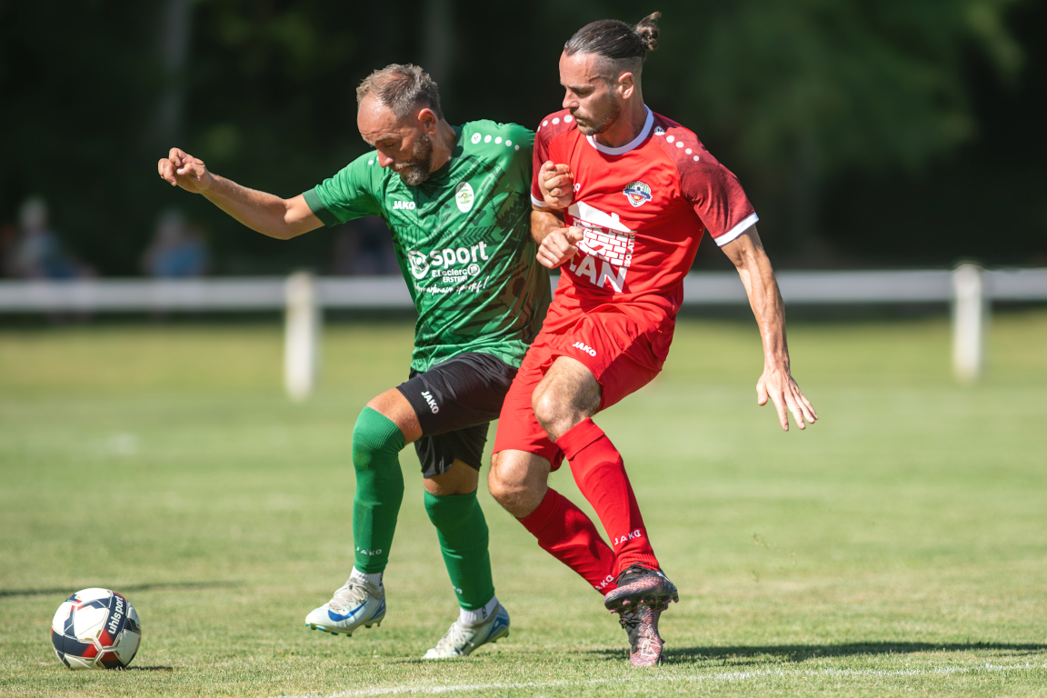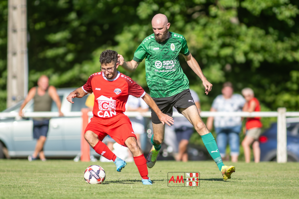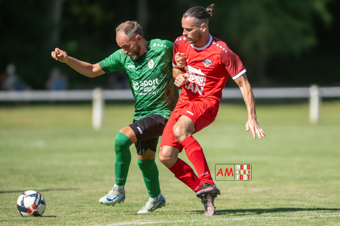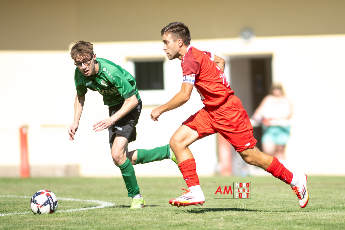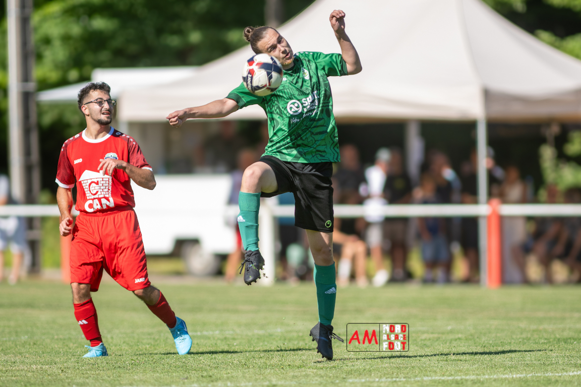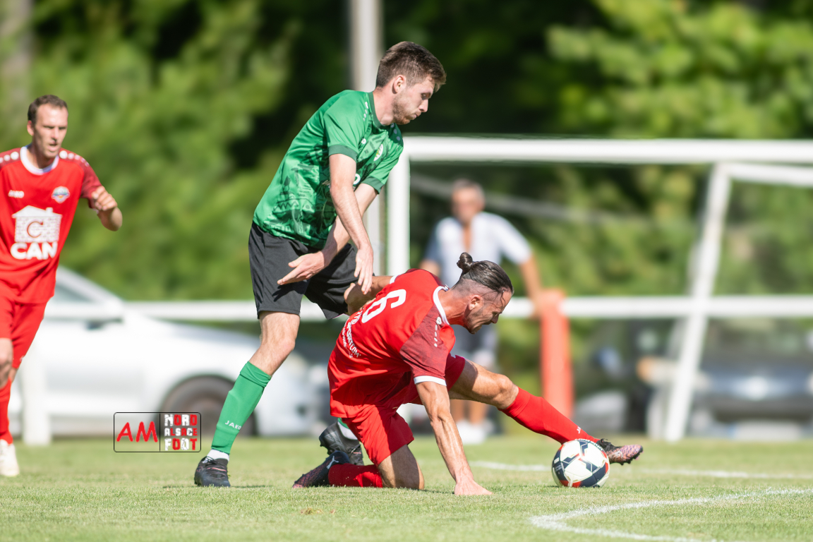 A l’occasion du premier tour de la Coupe de France – Crédit Agricole, le FR Schoenenbourg/M. (District 5) accueillait leurs voisins du FC Soultz/s/Forêt/Kutzenhausen (District 2) afin de tenter de créer un petit exploit dans ce derby de l’Outre-Forêt. Après une première période se soldant par un court avantage en faveur des locaux grâce à un but inscrit par Julien Beck (12e), le score n’évolua pas en seconde période et “Schoemé” se qualifia pour le tour suivant sur le plus petit des scores. Retrouvez, ci-dessous, quelques images de cette rencontre et, pour en apprécier le contenu, veuillez cliquer sur l’une d’entre elles pour afficher le diaporama.