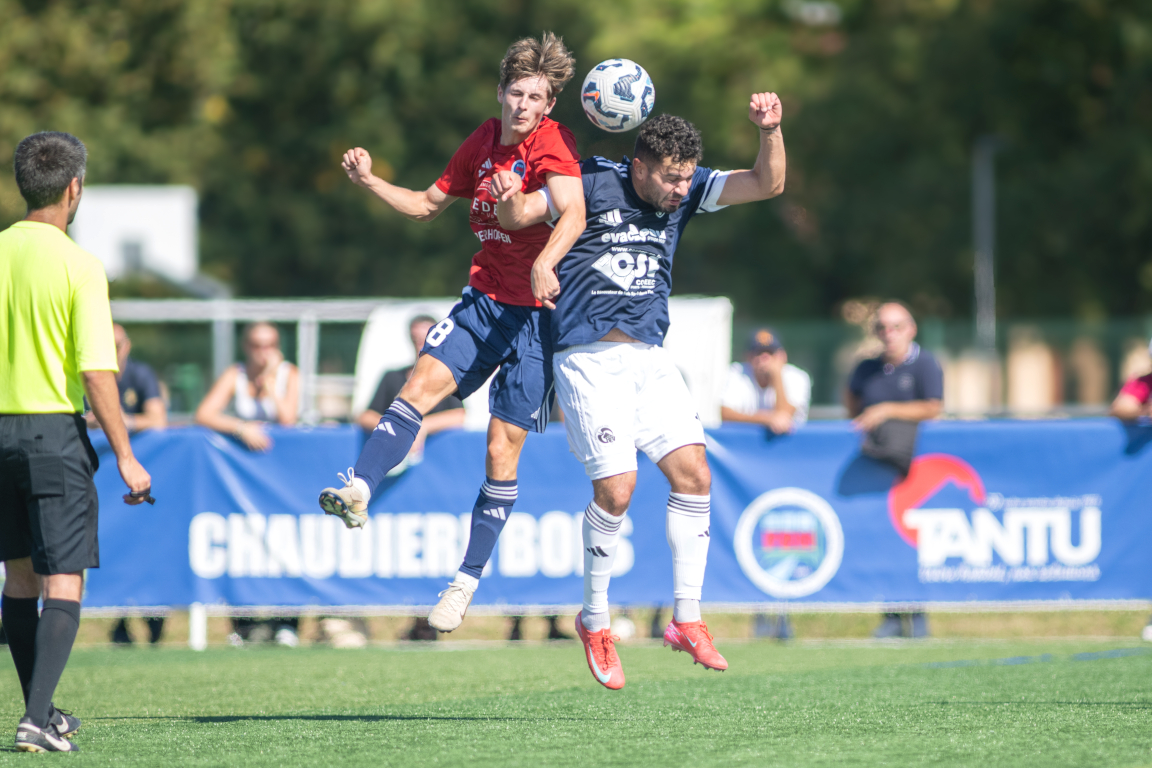 | 29′ | Idéalement lancé sur la droite, Carbiner Kelyan (FRH 2) partit à toute allure balle au pied jusqu’à hauteur des 16m desquels il émit une passe dans l’axe en faveur de Schuler Noah, ce dernier ne se faisant pas prier pour armer une frappe filant au-dessus du but adverse. | |