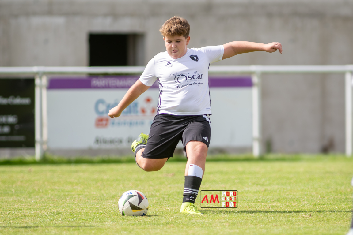 A l’occasion du premier tour de la Coupe d’Encouragement – Crédit Mutuel, les U13-5 du Groupement Jeunes d’Alsace du Nord accueillaient les U13-6 de l’Alliance de la Basse Zorn afin de tenter de se hisser au tour suivant malgré un effectif limité, et ce, face à des adversaires évoluant au même niveau. Après une première période se soldant par un large avantage en faveur des visiteurs (0-4), ces derniers ont continué à creuser l’écart en seconde période en ajoutant trois buts supplémentaires leur permettant finalement de s’imposer très largement sur ce score de 0-7. Retrouvez, ci-dessous, quelques images de cette rencontre et, pour en apprécier le contenu, veuillez cliquer sur l’une d’entre elles pour afficher le diaporama.