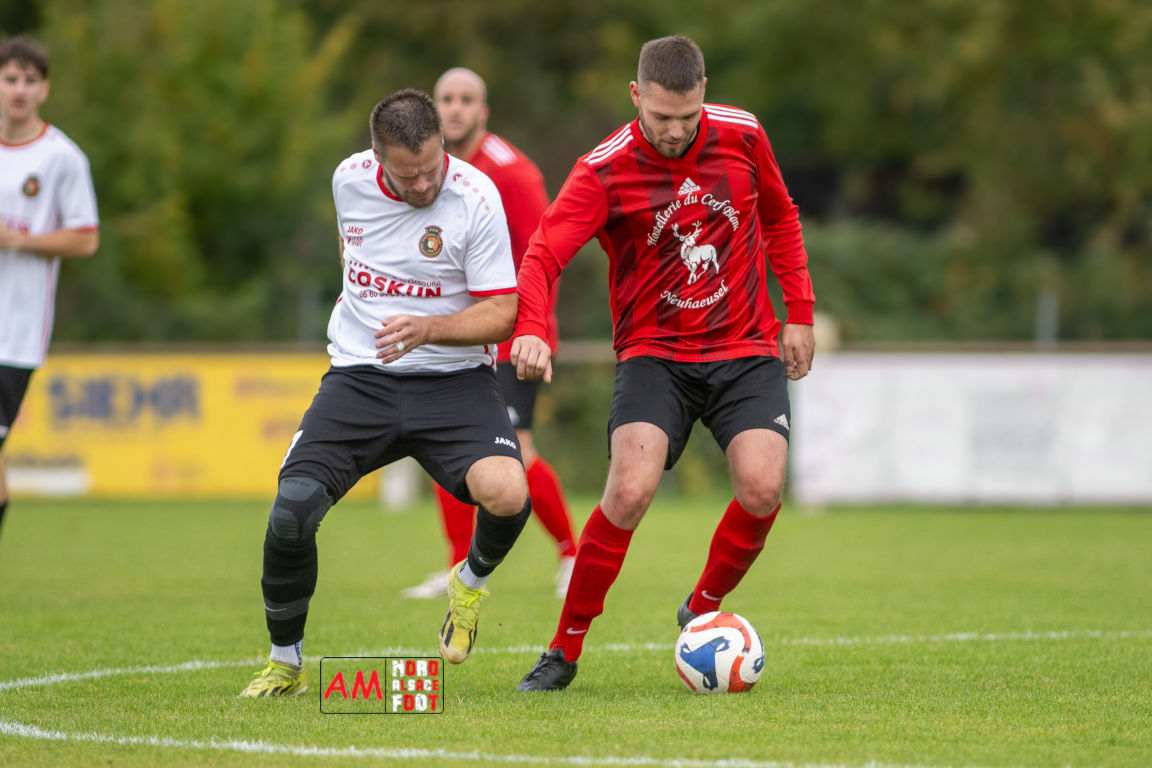 A l’occasion de la cinquième journée de championnat en District 7 (Poule C), le FC Niederlauterbach 2 accueillait le FC Neuhaeusel afin de tenter de confirmer le récent succès décroché, la semaine dernière, face à l’AS Hunspach 3 (3-8), et ce, face au leader invaincu de cette poule. Après une première période se soldant par un court avantage en faveur des locaux grâce à une réalisation signée Joerger Fabien (20e), les visiteurs allaient égaliser à la 52e minute de jeu par l’intermédiaire de Haenel Hugo avant, qu’à l’entame du dernier quart d’heure de jeu, Fels Frédéric ne transforme un penalty, ce qui permit au FC Neuhaeusel de s’imposer et de consolider sa place de leader du groupe. Retrouvez, ci-dessous, quelques images de cette rencontre et, pour en apprécier le contenu, veuillez cliquer sur l’une d’entre elles pour afficher le diaporama.