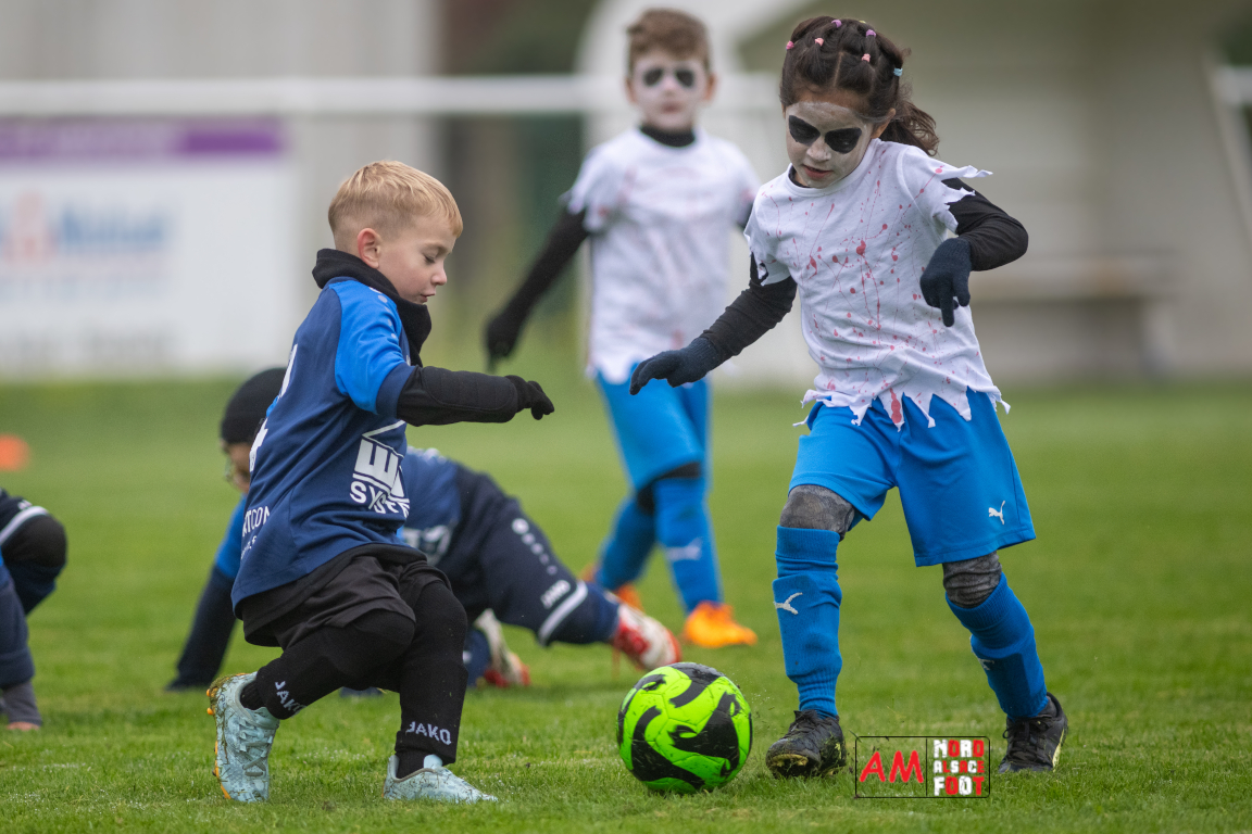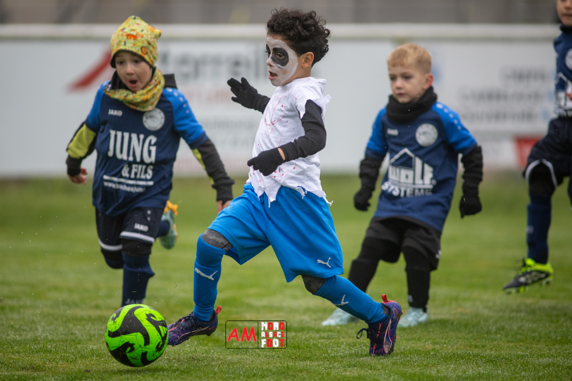 A l’occasion du premier rassemblement de cette deuxième phase automnale chez les U7 (Poule 7), pas moins de huit équipes se sont rejoints sur les installations du FC Riedseltz pour un plateau sur le thème de Halloween. C’est par un temps de saison que les plus petits ont pu donner le meilleur d’eux mêmes devant leurs suiveurs. Retrouvez, ci-dessous, quelques images de ce plateau et, pour en apprécier le contenu, veuillez cliquer sur l’une d’entre elles pour afficher le diaporama.
