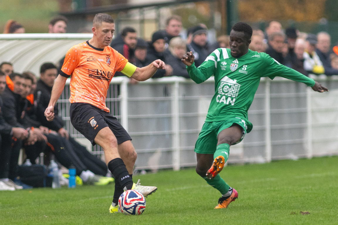 | 86′ | Idéalement servi en profondeur sur la droite, Renckert Léo (USOE) s’emmena le ballon jusqu’à hauteur des 16m desquels il émit un centre vers la gauche pour Zerr Nicolas qui vit sa frappe être détournée en corner par Nordt Matthieu, cette intervention salutaire du portier visiteur laissant place à un coup de pied de coin que Vetterhoeffer Yanis se chargea de botter de la gauche en direction du premier poteau à hauteur duquel Nordt Matthieu boxa le ballon en étant relayé par l’un de ses défenseurs. | |