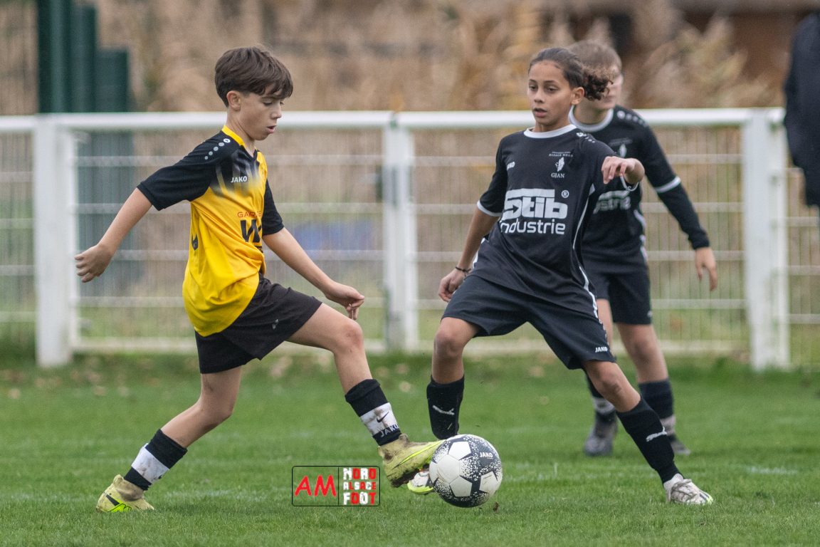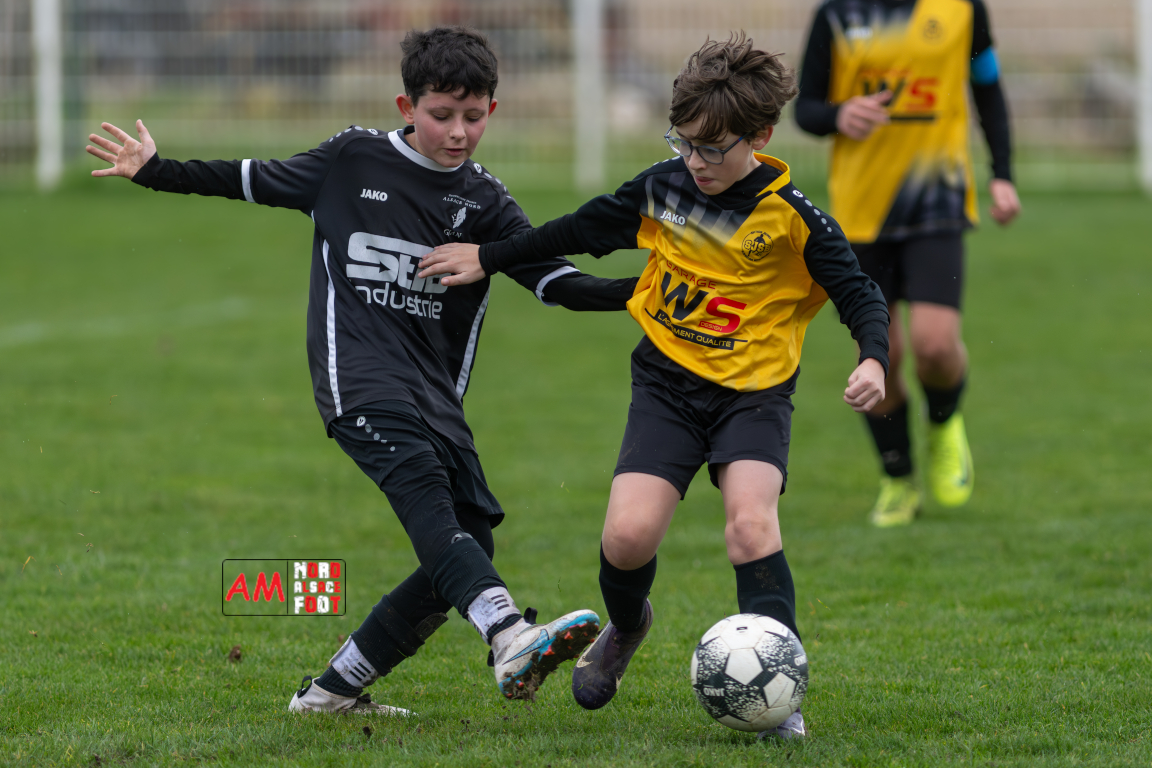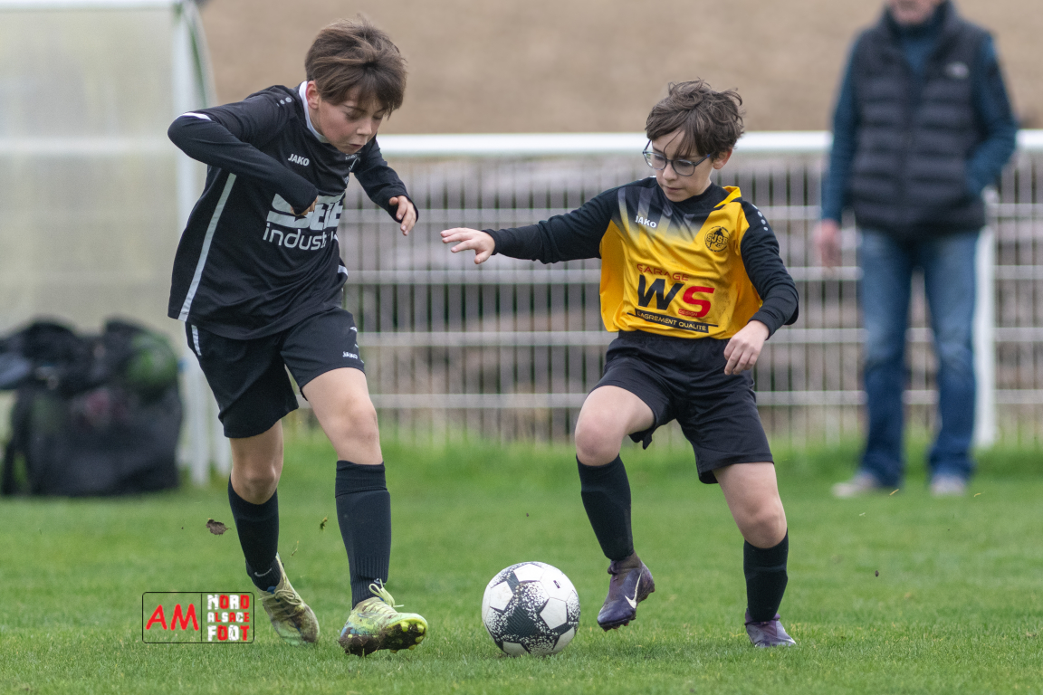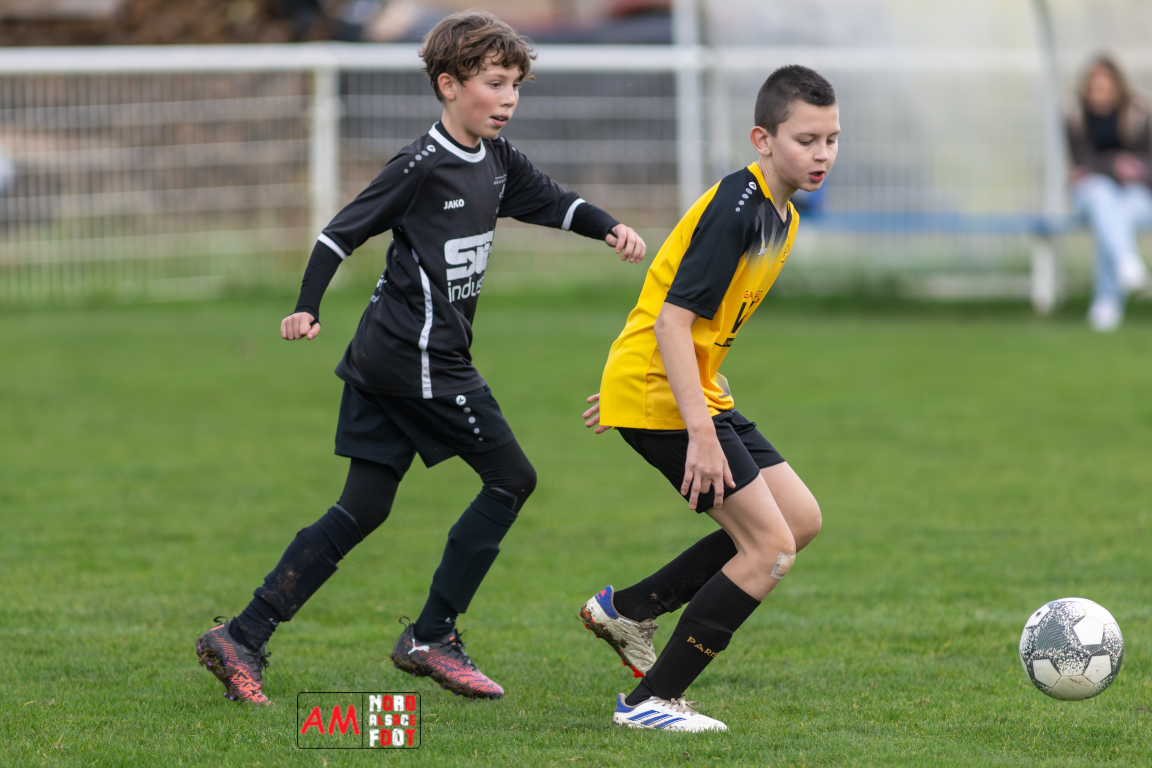 A l’occasion de la huitième journée de cette phase automnale chez les U13/D4 (Poule C), les U13-6 du Groupement Jeunes d’Alsace du Nord accueillaient les U13-2 de la Section Jeunes Surbourg/Betschdorf afin de tenter de rééditer la performance du match aller (1-6), et ce, faceà des adversaires voulant rectifier le tir après leur récent revers face au leader Niederlauterbach/GJAN 7 (3-1). Après une première période se soldant par un léger avantage en faveur des locaux (2-1), les visiteurs renversèrent la vapeur en seconde période avant que les protégés d’Alexandre Place ne parviennent à arracher le match nul, les deux équipes se séparant dos à dos sur ce score de 3-3. Retrouvez, ci-dessous, quelques images de cette rencontre et, pour en apprécier le contenu, veuillez cliquer sur l’une d’entre elles pour afficher le diaporama.