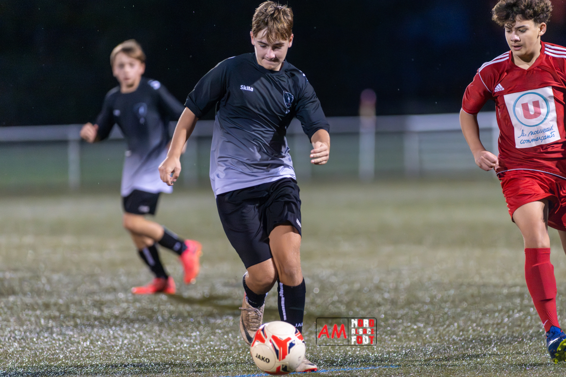 A l’occasion de la huitième journée de championnat chez les U18/D3 (Poule A), le Groupement Jeunes d’Alsace du Nord accueillait le FC Bischwiller afin de tenter d’enregistrer une première victoire cette saison (outre celle acquise sur forfait du GVS), et ce, face à des adversaires ne pouvant qu’encore viser la seconde place du classement avant la trêve hivernale, l’US Niederbronn ayant déjà validé le titre de champion d’automne. Après une première période se soldant par un large avantage en faveur des visiteurs (0-5), ces derniers ajoutèrent un but au compteur et les locaux parvinrent à sauver leur honneur au cours de la seconde période avant que le FC Bischwiller ne s’impose sur ce score de 1-6. Retrouvez, ci-dessous, quelques images de cette rencontre et, pour en apprécier le contenu, veuillez cliquer sur l’une d’entre elles pour afficher le diaporama.