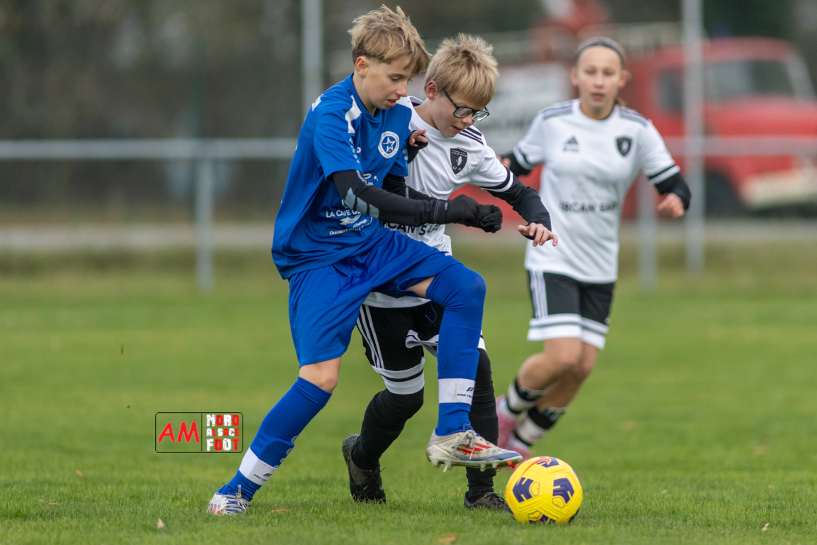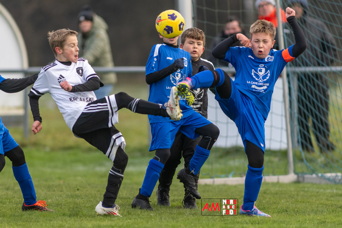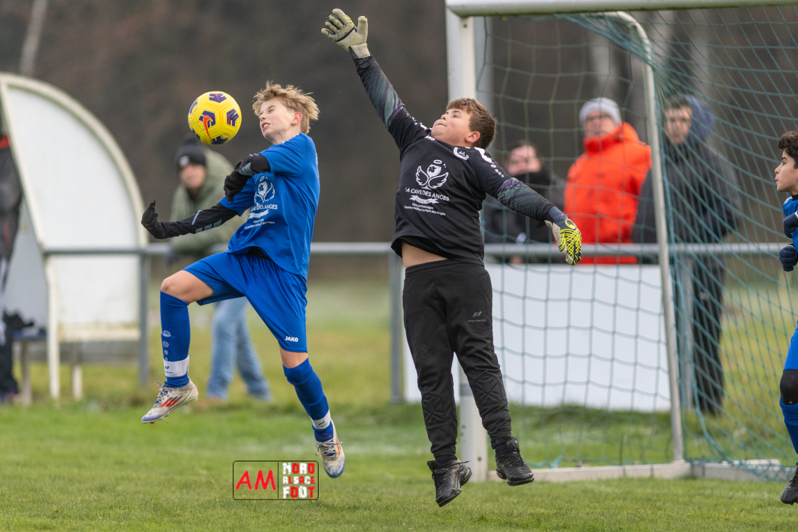 A l’occasion de la neuvième journée de championnat chez les U13/D4 (Poule D), les U13-8 du Groupement Jeunes d’Alsace du Nord accueillaient les U13-4 du FCE Schirrhein avec la ferme intention de réussir leur dernier match de l’année au Stade Martin Fischer, et ce, face à des adversaires voulant confirmer leur large victoire décrochée la semaine dernière face aux U13-2 de la Jeunesse de l’UFFRIED (7-0). Après une première période se soldant par un avantage confortable en faveur des visiteurs (0-2), les locaux revinrent aux affaires en seconde période sans qu’ils ne peuvent empêcher leurs adversaires de prendre le dessus, ce qui leur permit de s’imposer sur ce score de 2-3. Retrouvez, ci-dessous, quelques images de cette rencontre et, pour en apprécier le contenu, veuillez cliquer sur l’une d’entre elles pour afficher le diaporama.