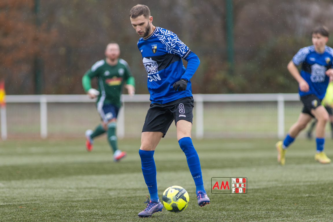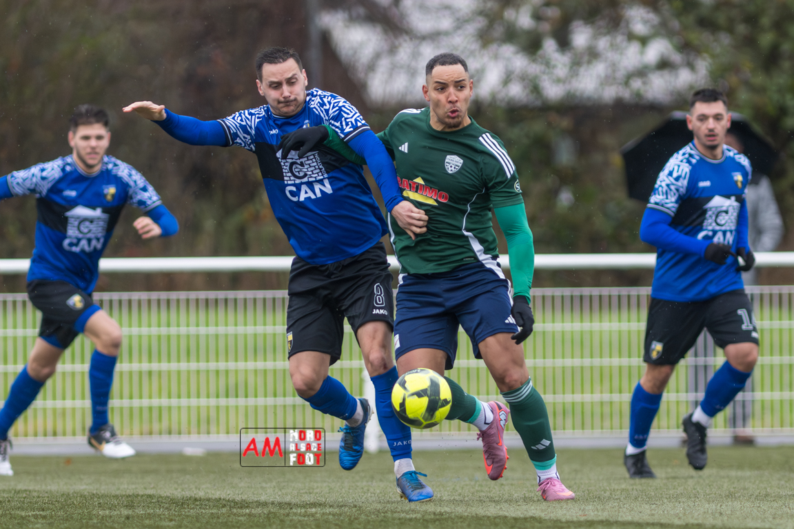 A l’occasion de la dixième journée de championnat en Régional 3 (Poule K), le FC Steinseltz accueillait le FC Eckbolsheim au stade des Turcos de Wissembourg afin de tout mettre en oeuvre pour glaner une victoire pouvant leur permettre de quitter provisoirement la zone rouge, et ce, face à des adversaires pouvant revenir à six longueurs du leader en cas de succès. Après une première période se soldant par un court avantage en faveur des visiteurs grâce à une réalisation signée Ntjam Manguele Samuel (14e), ces derniers allaient profiter de leur supériorité numérique suite à l’expulsion de Schneider Hervé (68e) pour inscrire trois buts par l’intermédiaire de Nellec Florian (74e), de Tano Ilies (84e) et de Arnould Michel (86e) avant qu’ils ne finissent par s’imposer sur ce score de 0-4. Retrouvez, ci-dessous, quelques images de cette rencontre et, pour en apprécier le contenu, veuillez cliquer sur l’une d’entre elles pour afficher le diaporama.