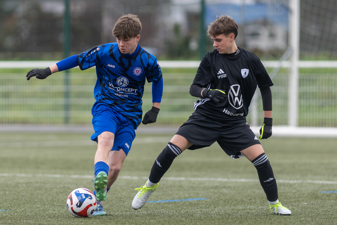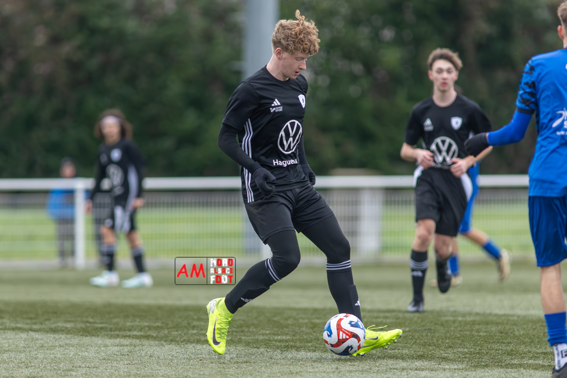 A l’occasion de la onzième journée de championnat chez les U18/D2 (Poule A), le Groupement Jeunes d’Alsace du Nord (8e) accueillait l’entente Durrenbach/Hegeney (9e) afin de tenter d’enregistrer une première victoire à domicile, et ce, face à des adversaires cherchant un premier succès à l’extérieur. Après une première période se soldant par un score nul et vierge, il fallut attendre les derniers instants de la partie pour voir les visiteurs ouvrir le score avant qu’ils ne finissent par s’imposer sur la plus courte des marges. Retrouvez, ci-dessous, quelques images de cette rencontre et, pour en apprécier le contenu, veuillez cliquer sur l’une d’entre elles pour afficher le diaporama.