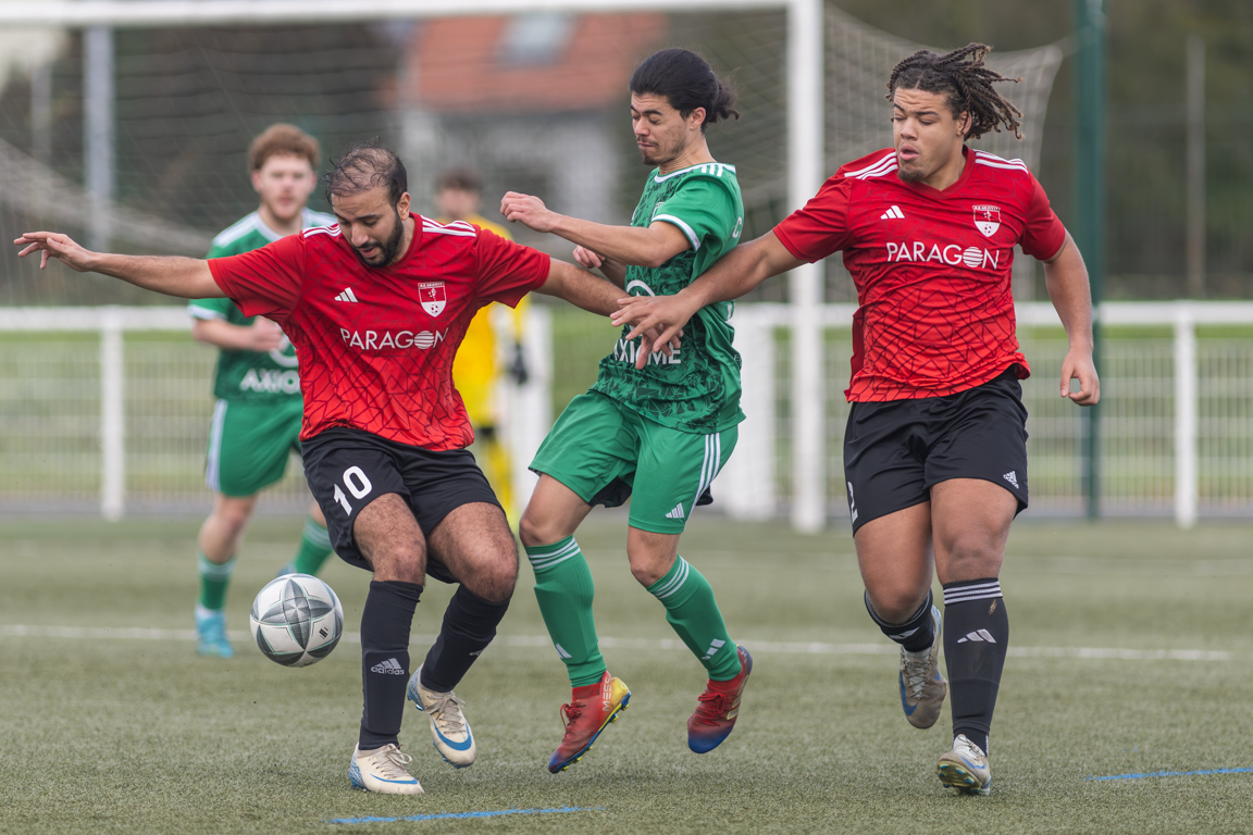 | 25′ | Suite à une action collective ayant parfaitement été menée par les visiteurs, Fauvelle Raphaël hérita, en dernier lieu, du ballon dans l’axe avant qu’il ne lance Vollmer Jonathan sur la droite, ce dernier pénétrant ensuite dans la surface de réparation dans laquelle il émit un centre à ras-de-terre en direction du premier poteau à hauteur duquel Schaeffer Guillaume s’interposa. | |