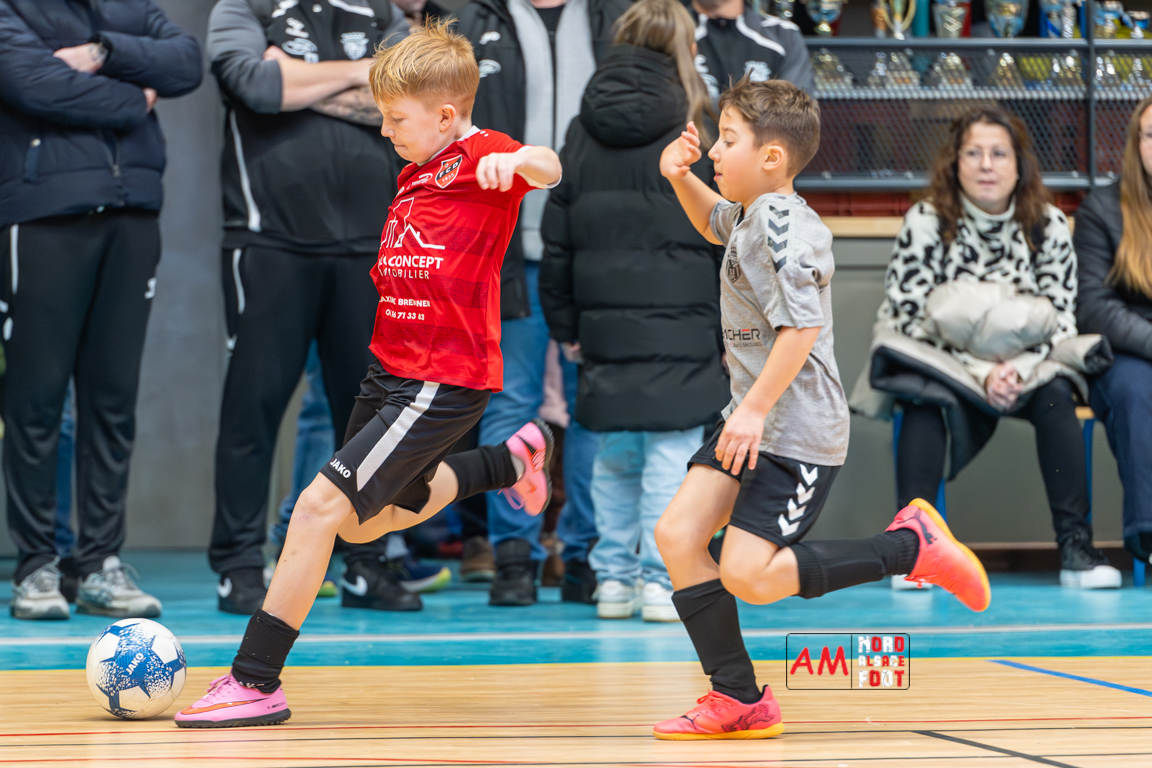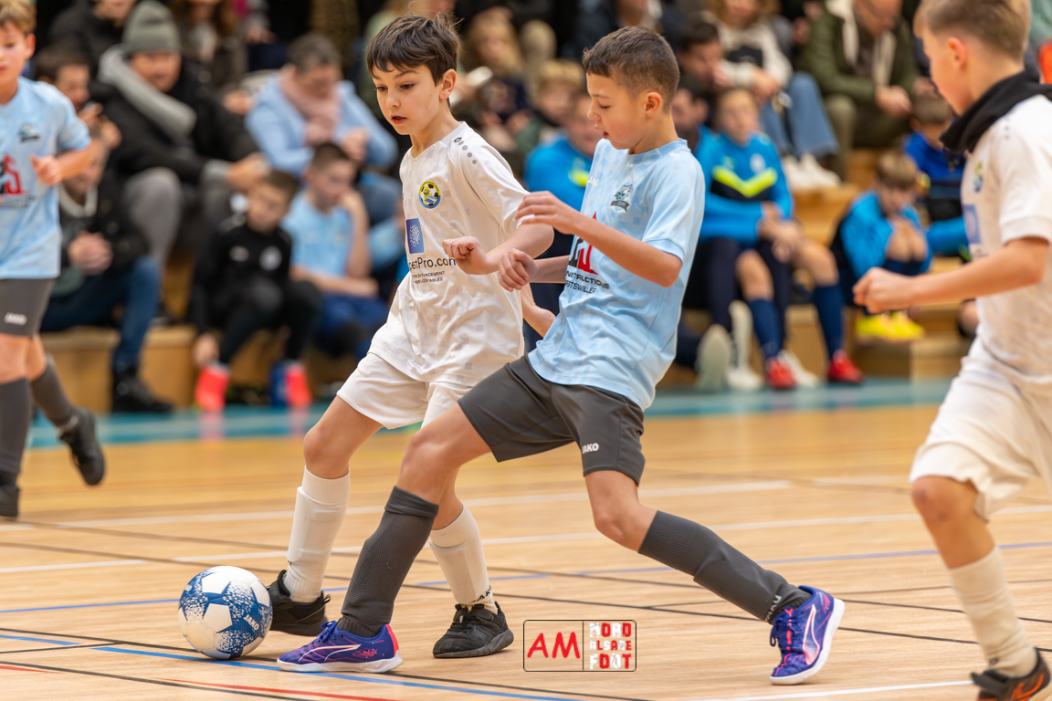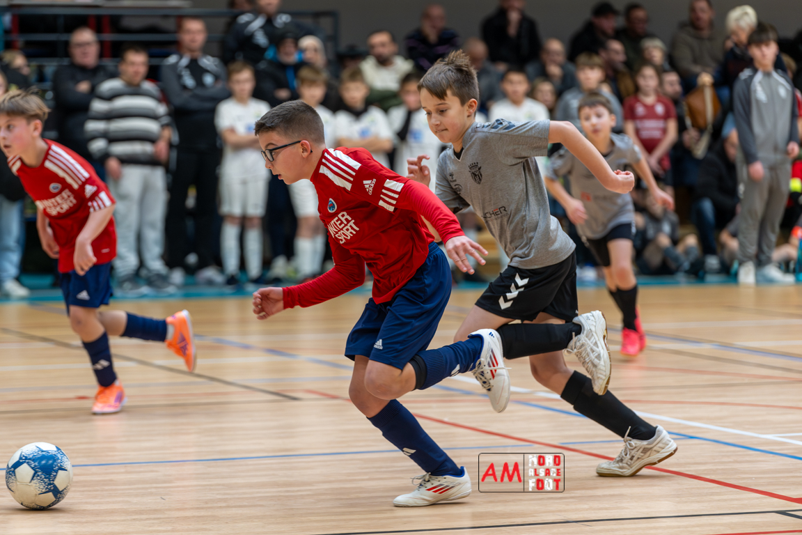 A l’occasion du premier tournoi en salle de la Jeunesse Sportive de l’Outre-Forêt, huit équipes de la catégorie U11 se sont donnés rendez-vous au gymnase du SIVOM de Soultz/s/Forêt afin de taper du ballon après plus d’un mois de trêve. Dans la Poule A on retrouvait la Jeunesse Sportive de l’Outre-Forêt 1, l’Alliance de la Basse Zorn, l’Alliance de la Haute Moder et la Jeunesse de l’UFFRIED (Rountzenheim). Dans la Poule B, on retrouvait la Jeunesse Sportive de l’Outre-Forêt 2, le FC Drusenheim, le FR Haguenau et l’Alliance des Vosges du Nord. Après un peu plus de trois heures et demi de débats, le FR Haguenau s’imposa en finale face à la Jeunesse de l’UFFRIED sur le plus petit des scores, la JSOF 1, le FC Drusenheim, l’Alliance des Vosges du Nord, l’Alliance de la Haute Moder, la JSOF 2 et l’Alliance de la Basse Zorn complétant ensuite le tableau dans l’ordre. Retrouvez, ci-dessous, quelques images de ce tournoi et, pour en apprécier le contenu, veuillez cliquer sur l’une d’entre elles pour afficher le diaporama.