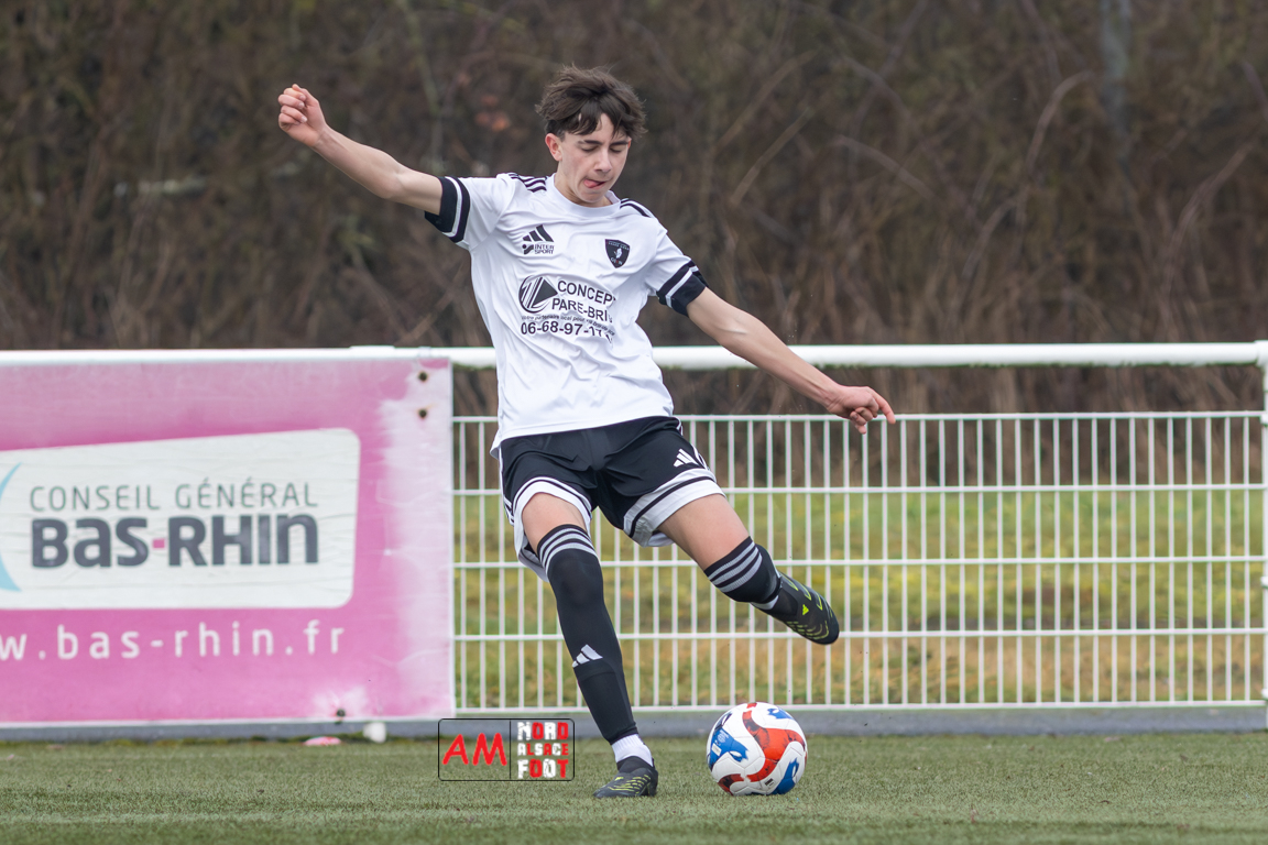 A l’occasion d’un match de préparation les U15/R2 du Groupement Jeunes d’Alsace du Nord accueillaient un mélange des U15/D1 et des U15/R2 de la section jeunes du KOMETRIB afin de travailler les automatismes avant la reprise de la compétition intervenant prochainement. Après une première période se soldant par un avantage confortable en faveur de l’entente locale (2-0), cette dernière allait continuer de creuser l’écart en seconde période en ajoutant quatre buts au compteur avant que les visiteurs ne parviennent à sauver leur honneur en fin de rencontre, les deux équipes se quittant finalement sur ce score de 6-1. Retrouvez, ci-dessous, quelques images de cette rencontre et, pour en apprécier le contenu, veuillez cliquer sur l’une d’entre elles pour afficher le diaporama.