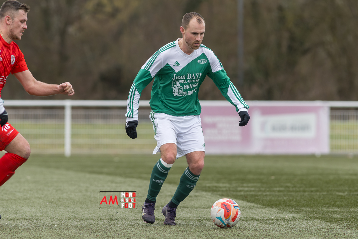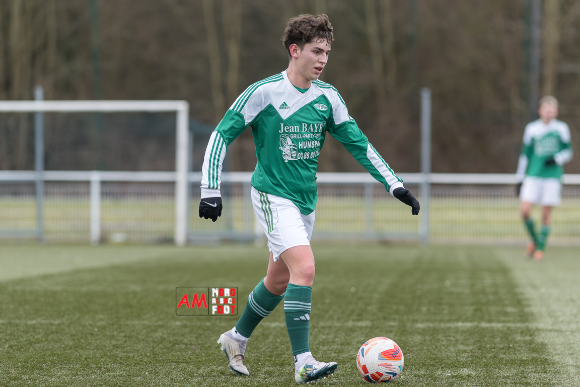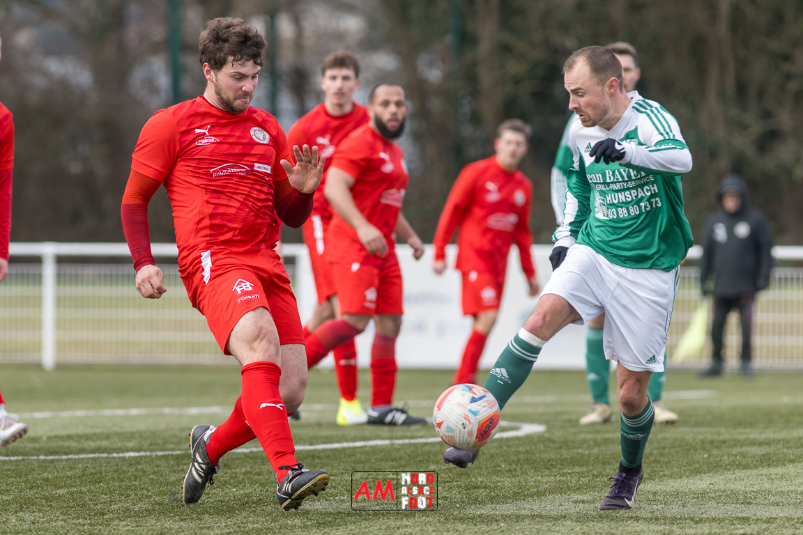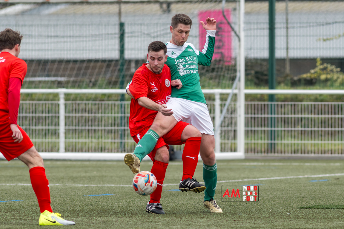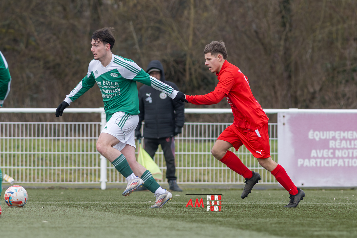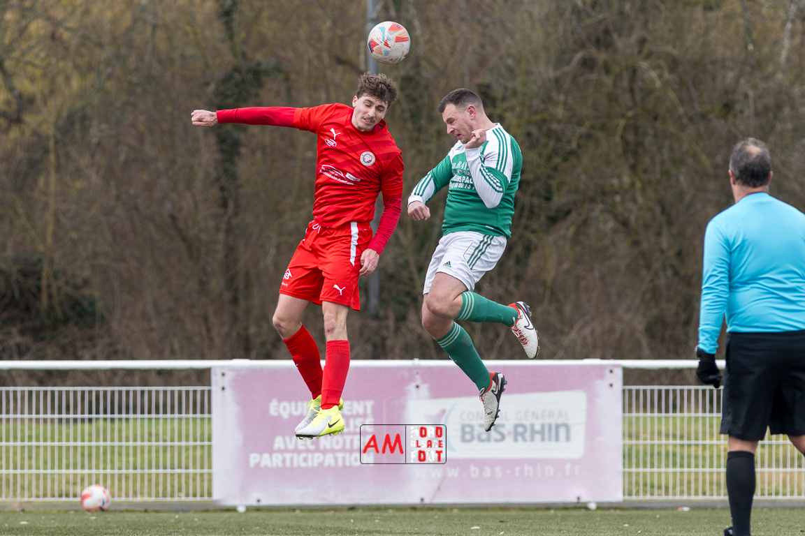 A l’occasion d’un match en retard comptant pour la onzième journée de championnat en District 3 (Poule B), l’AS Hunspach 2 accueillait, dimanche matin au stade des Turcos de Wissembourg, le SR Rountzenheim/Auenheim afin de tout mettre en oeuvre pour chercher une victoire pouvant leur permettre de passer devant leurs adversaire du jour au classement. Menée dès la 7e seconde de jeu sur une ouverture du score de Stoll Cédric pour le SR Rountzenheim/Auenheim, l’AS Hunspach 2 a progressivement repris le contrôle de la rencontre avant de parvenir à égaliser avant la pause grâce à Weishaar Florent (45e+2). Au retour des vestiaires, les verts ont accentué leur pression et elle a été récompensé par un but de Fassel Dylan (66e). En fin de rencontre, Weishaar Florent inscrit un doublé dans le temps additionnel (90e+1) scellant la victoire pour son équipe au terme d’un match où elle aura su réagir après un début de partie défavorable. Retrouvez, ci-dessous, quelques images de cette rencontre et, pour en apprécier le contenu, veuillez cliquer sur l’une d’entre elles pour afficher le diaporama.