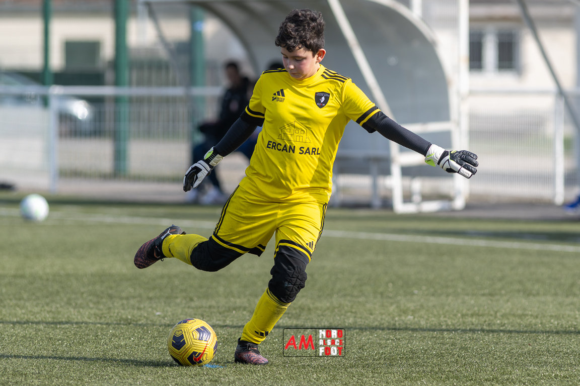 A l’occasion du 3e tour de la Coupe d’Encouragement – Crédit Mutuel dans la catégorie U13, les U13-8 du Groupement Jeunes d’Alsace du Nord accueillaient les U13-2 de la Jeunesse Sportive de l’Outre-Forêt afin de tenter de leur tenir tête pour la reprise de la compétition officielle. Après une première période se soldant par un court avantage en faveur des visiteurs (0-1), ces derniers déroulèrent en seconde période en inscrivant sept buts, ce qui leur permit de largement s’imposer sur ce score de 0-8. Retrouvez, ci-dessous, quelques images de cette rencontre et, pour en apprécier le contenu, veuillez cliquer sur l’une d’entre elles pour afficher le diaporama.