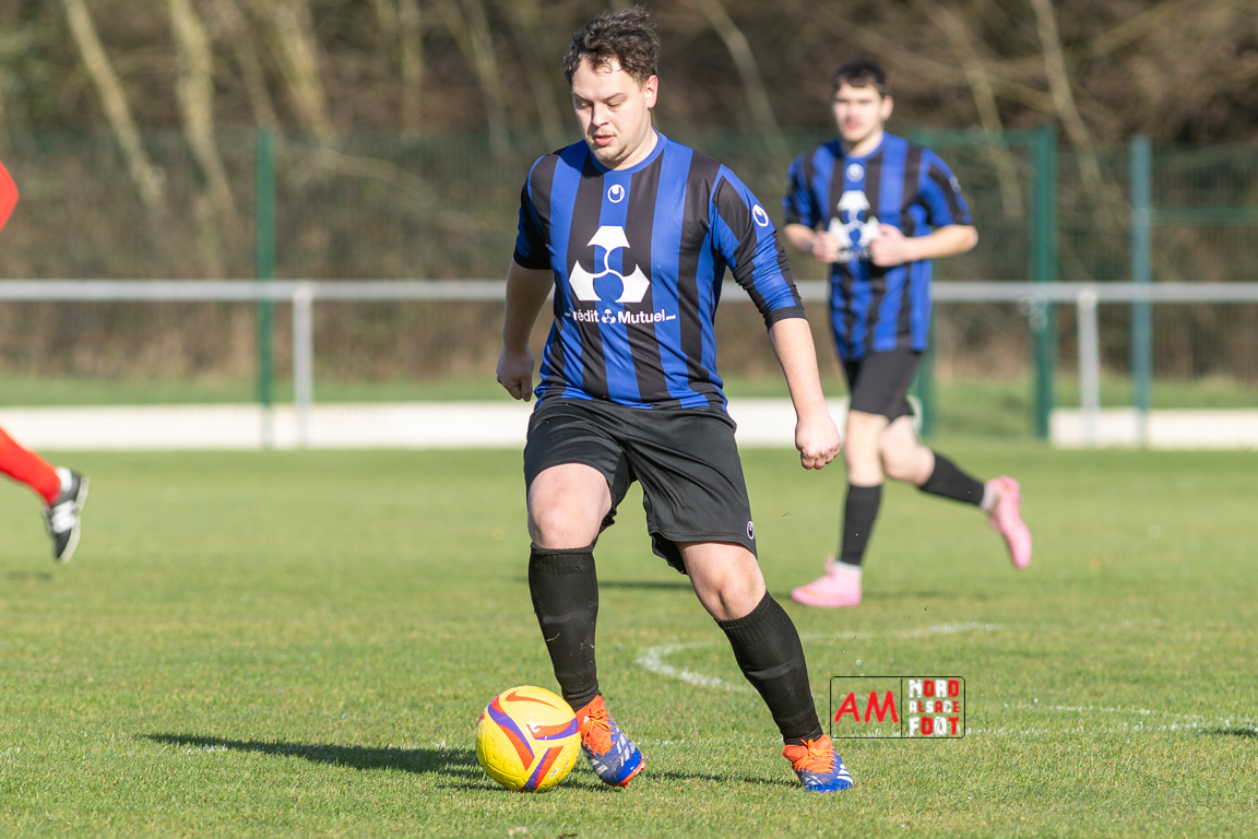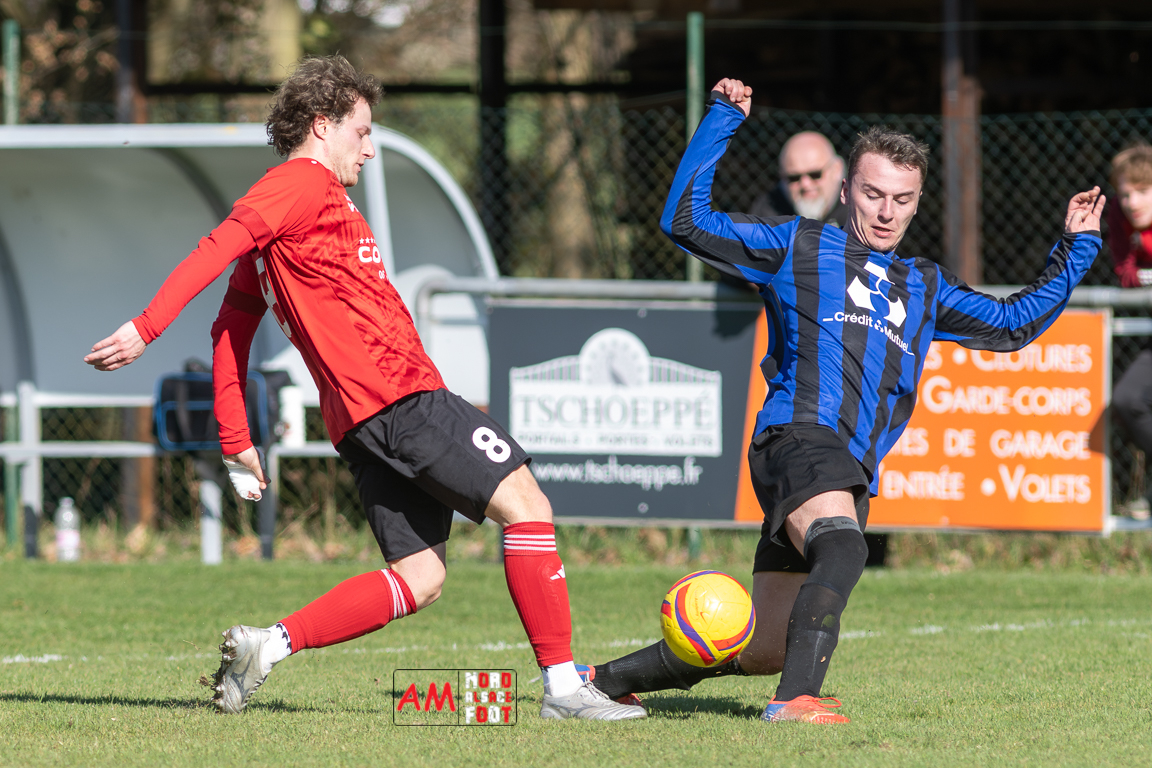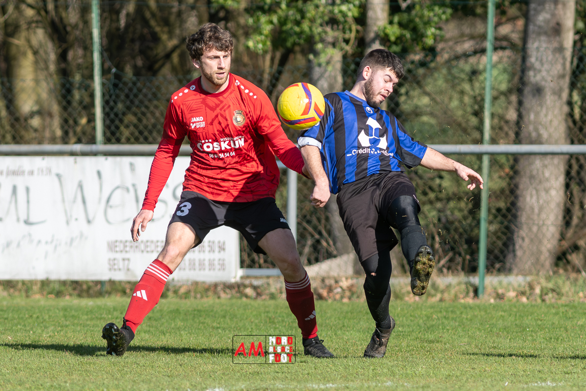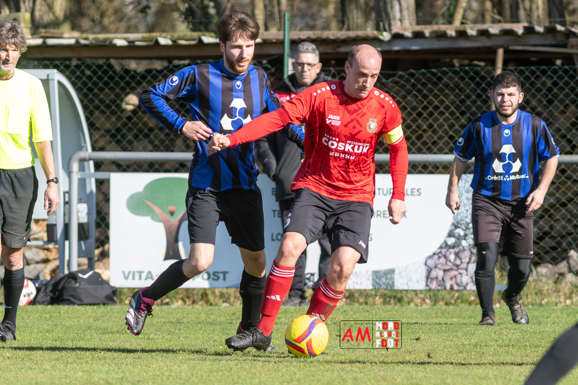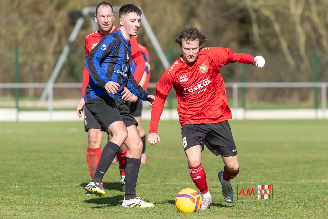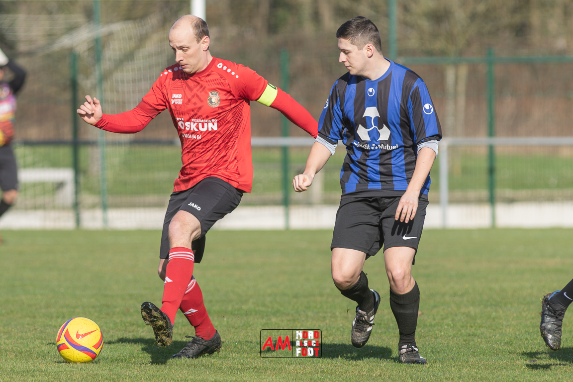 A l’occasion d’un match en retard comptant pour le tour intermédiaire du Challenge des réserves – Vivialys, le FC Niederroedern/OS 2 (District 8 Accession) accueillait le FC Niederlauterbach 2 (District 7 maintien) avec l’intention de redémarrer la compétition officielle par une qualification, et ce, face à des adversaires voulant faire respecter la hiérarchie. Après une première période se soldant par un avantage confortable en faveur des visiteurs grâce à un doublé de Jung Alexandre (18e, 28e), les locaux allaient parvenir à refaire leur retard en seconde période grâce à des buts inscrits par Wurth Joeffrey (54e) et Metzger Gaetan (64e) avant que Jung Alexandre ne s’offre un triplé (73e) permettant au FC Niederlauterbach 2 de valider sa qualification pour les seizièmes de finale de la compétition. Retrouvez, ci-dessous, quelques images de cette rencontre et, pour en apprécier le contenu, veuillez cliquer sur l’une d’entre elles pour affiche le diaporama.