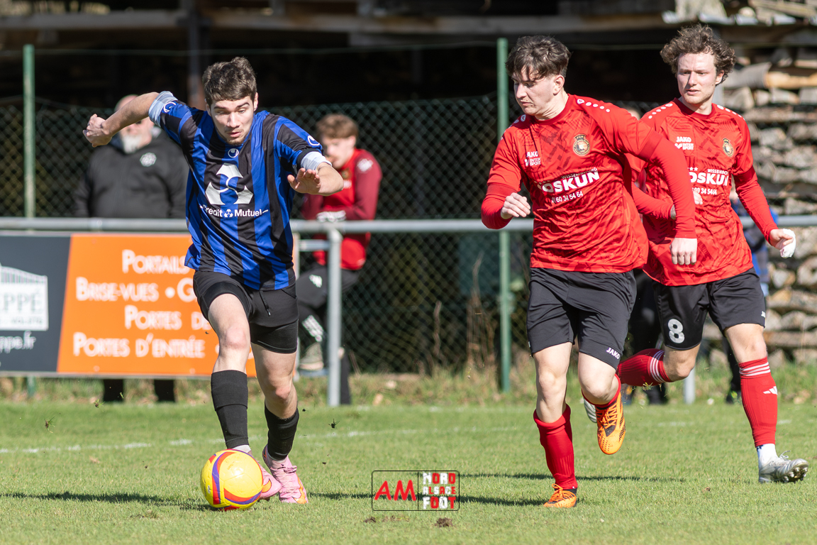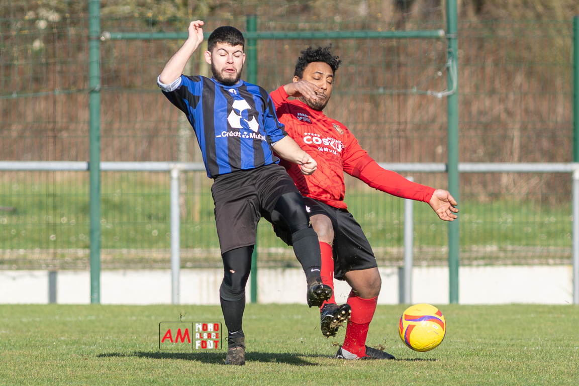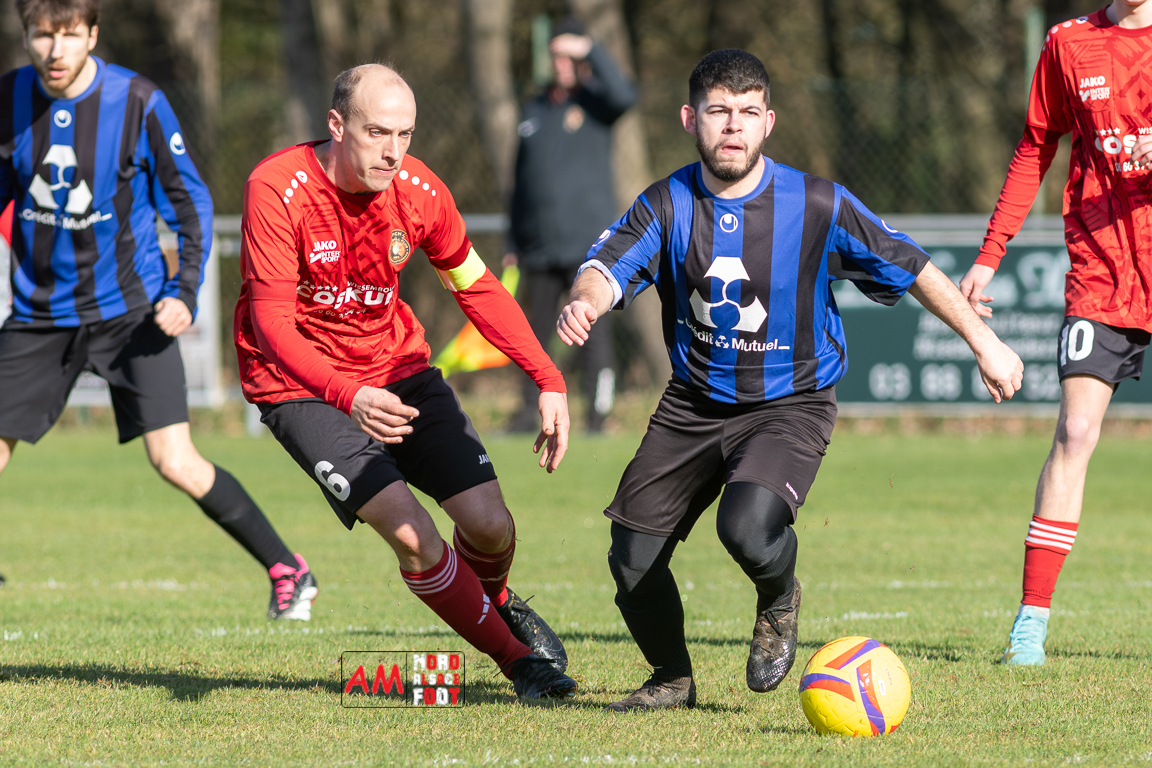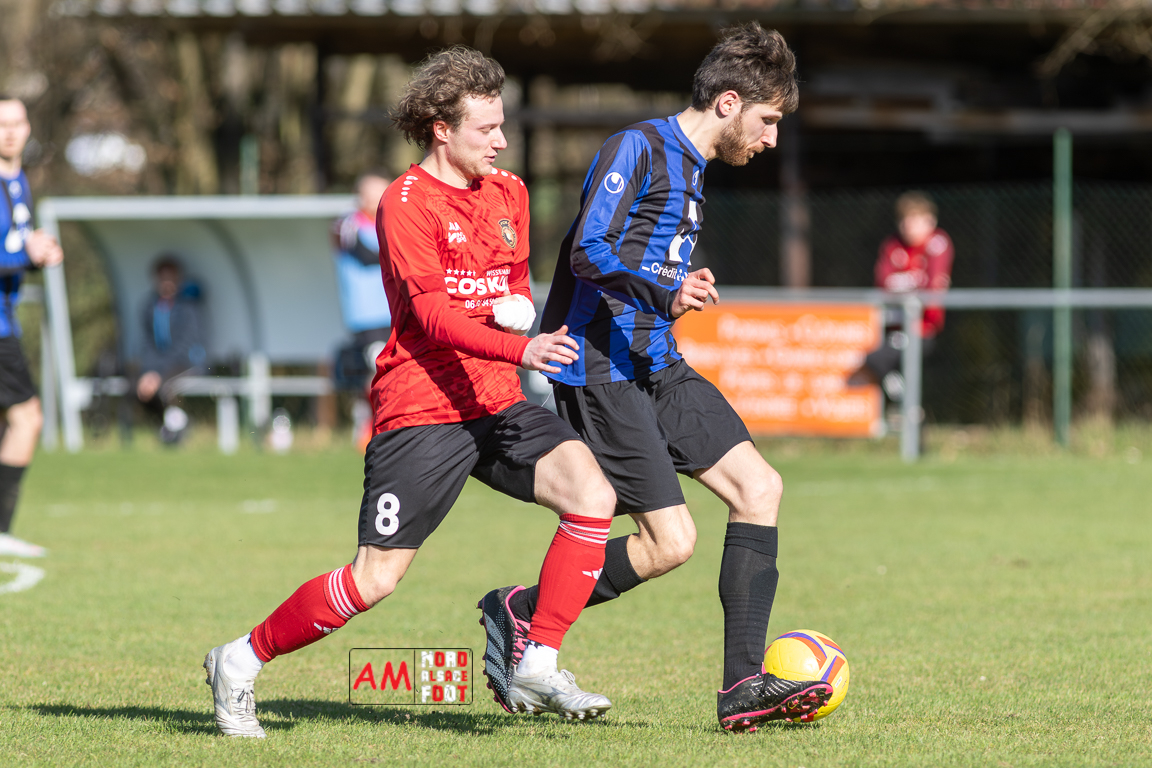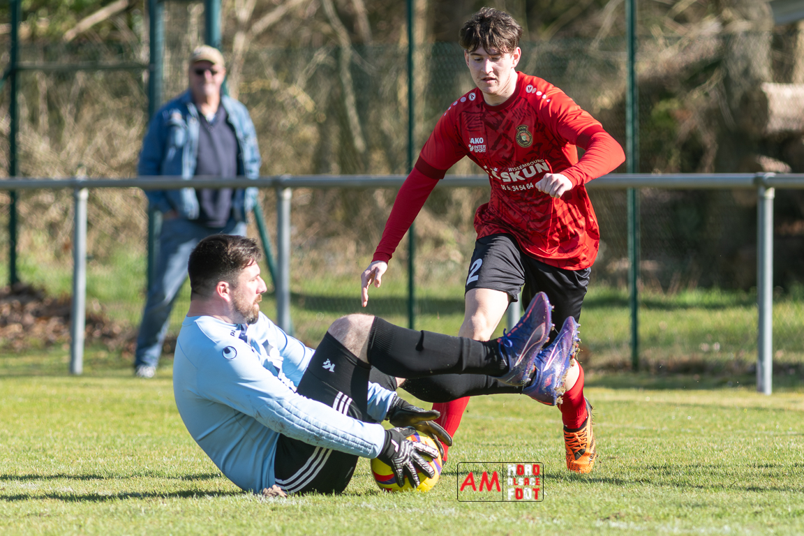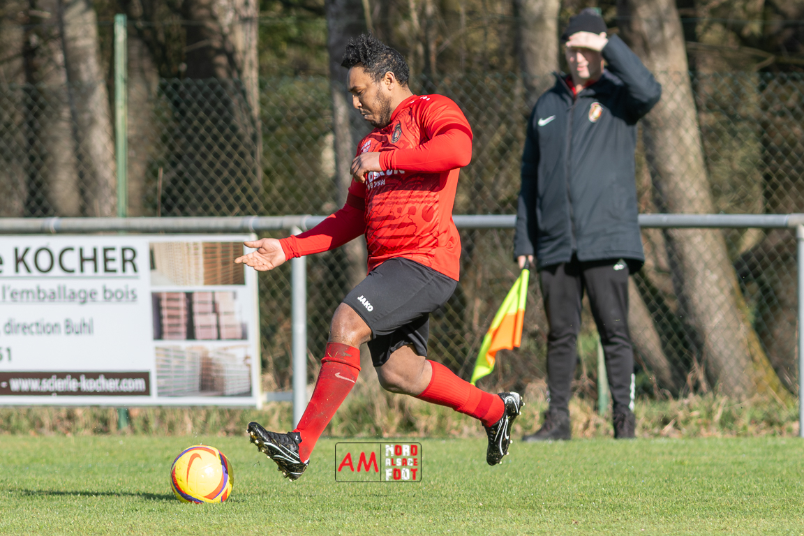 A l’occasion d’un match en retard comptant pour le tour intermédiaire du Challenge des réserves – Vivialys, le FC Niederroedern/OS 2 (District 8 Accession) accueillait le FC Niederlauterbach 2 (District 7 maintien) avec l’intention de redémarrer la compétition officielle par une qualification, et ce, face à des adversaires voulant faire respecter la hiérarchie. Après une première période se soldant par un avantage confortable en faveur des visiteurs grâce à un doublé de Jung Alexandre (18e, 28e), les locaux allaient parvenir à refaire leur retard en seconde période grâce à des buts inscrits par Wurth Joeffrey (54e) et Metzger Gaetan (64e) avant que Jung Alexandre ne s’offre un triplé (73e) permettant au FC Niederlauterbach 2 de valider sa qualification pour les seizièmes de finale de la compétition. Retrouvez, ci-dessous, quelques images de cette rencontre et, pour en apprécier le contenu, veuillez cliquer sur l’une d’entre elles pour affiche le diaporama.