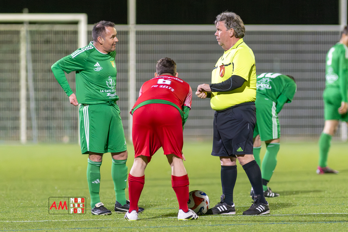 A l’occasion de la huitième journée de championnat chez les Vétérans (Poule D), le FC Seltz en leader invaincu, accueillait l’AS Hunspach afin de tenter de poursuivre leur hégémonie dans ce groupe, et ce, face à des adversaires ne s’étant pas déplacés pour faire de la figuration. Après une première période se soldant par un score nul et vierge malgré toutes les occasions vendangées par les locaux, c’est bel et bien les Hunspachois qui prennent l’avantage par l’intermédiaire de Farid Boubrik, ce dernier étant ensuite passeur pour l’inusable Thomas Blattner qui assure définitivement le break. Retrouvez, ci-dessous, quelques images de cette rencontre et, pour en apprécier le contenu, veuillez cliquer sur l’une d’entre elles pour afficher le diaporama.