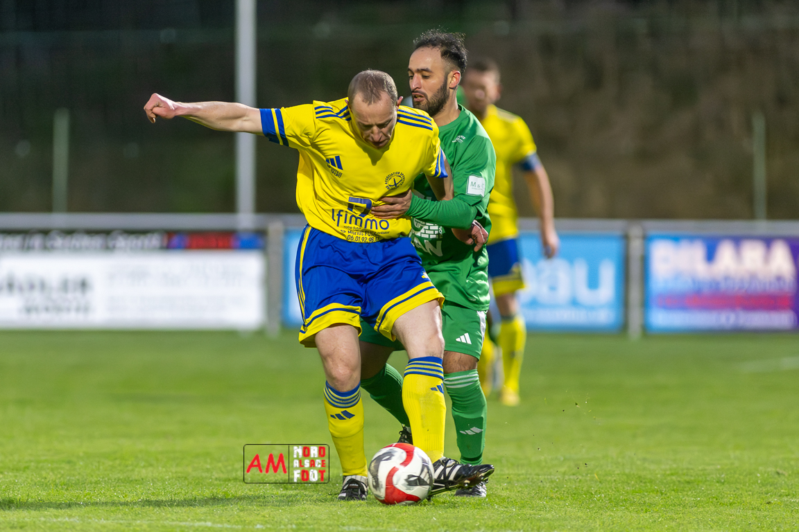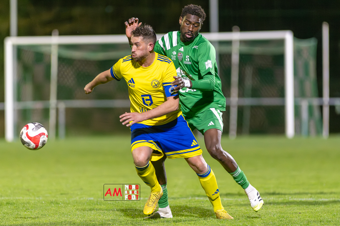 A l’occasion de la quatorzième journée de championnat en Régional 2 (Poule F), le FC Scheibenhard accueillait l’AS Ohlungen afin de conforter leur troisième place en faveur d’une victoire samedi soir, et ce, face à des adversaires voulant confirmer leur récent succès décroché face au FC Drusenheim (1-0). Après une première période se soldant par un score nul et vierge, les locaux ouvrirent le score par l’intermédiaire de Koffi Etchjien (47e) avant que les visiteurs n’égalisent en fin de rencontre grâce à un penalty transformé par Ritzenthaler Luc (84e), les deux équipes se quittant donc dos à dos sur ce score de 1-1. Retrouvez, ci-dessous, quelques images de cette rencontre et, pour en apprécier le contenu, veuillez cliquer sur l’une d’entre elles pour afficher le diaporama.