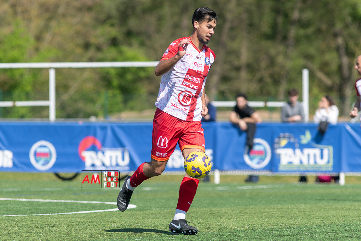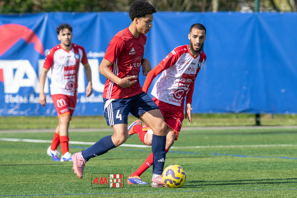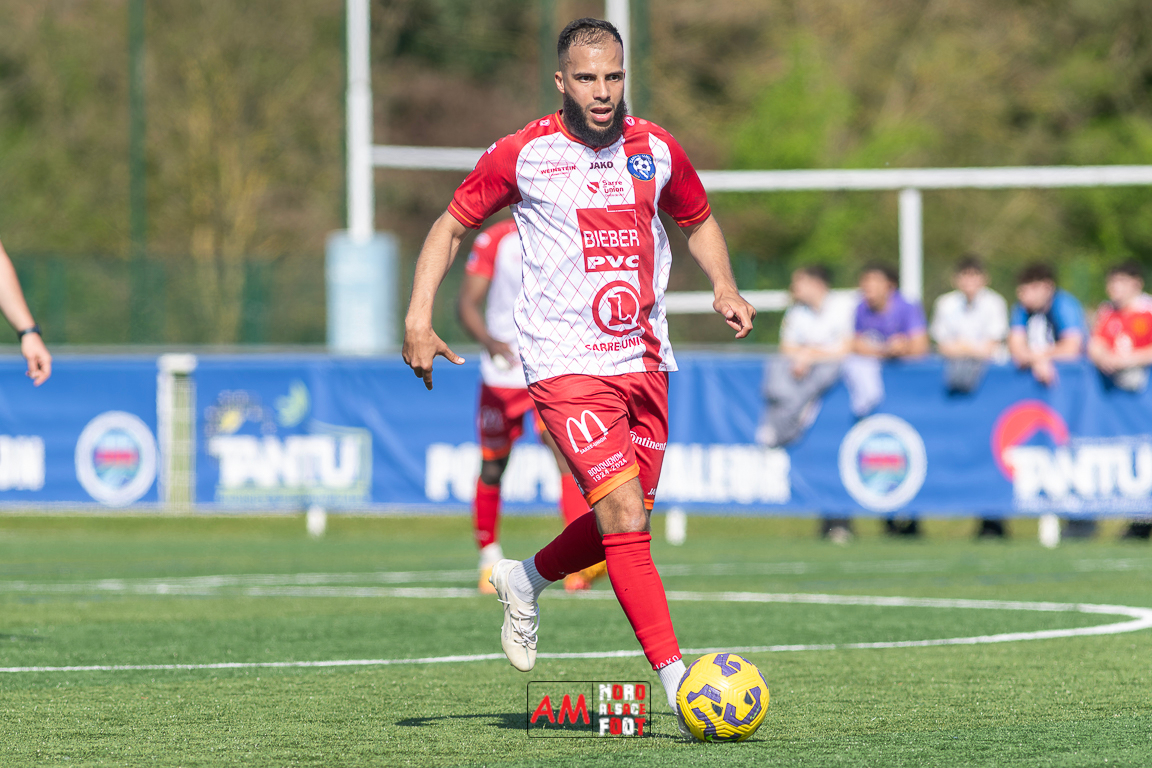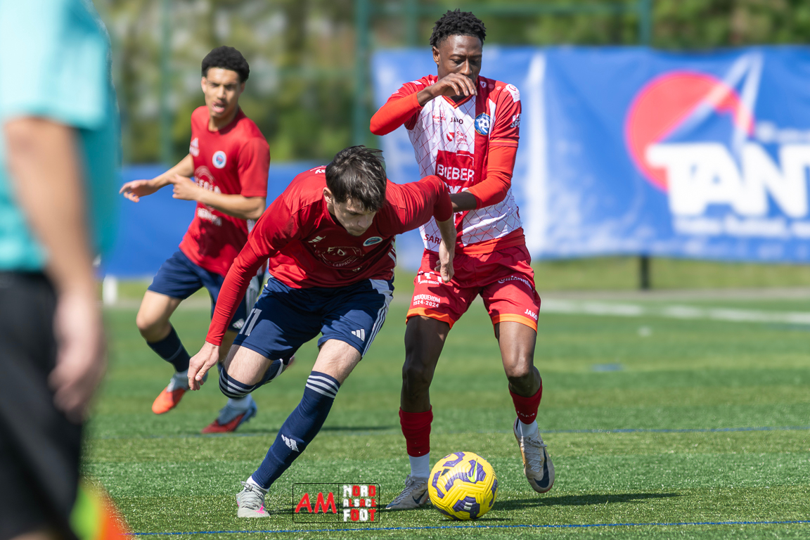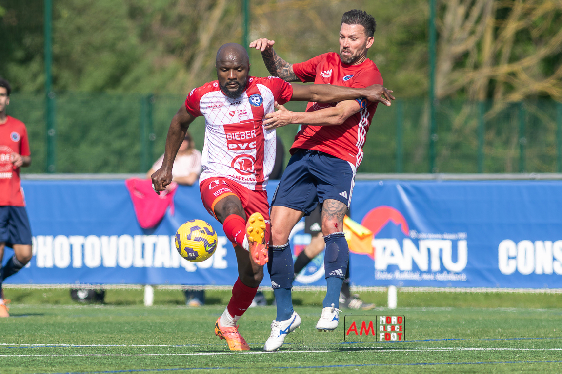A l’occasion de la 22e journée de championnat en Régional 1 (Poule B), le FR Haguenau 2 (11e) accueillait l’US Sarre-Union (8e) afin de tenter de valider, au point près, leur maintien dans la division en faveur d’un succès, et ce, face à des adversaires pouvant encore jouer les places d’honneur. Après une première période se soldant par un léger avantage en faveur des visiteurs grâce à des réalisations signées Guendez Uzed (15e) et Aroustanov Robert (24e) contre une ouverture du score locale signée Klein Mathéo (7e), les visiteurs font le break à la 48e minute de jeu grâce à un doublé d’Aroustanov Robert avant que Mazroui Amine ne réduise la marque à la 59e minute de jeu, les deux équipes se neutralisant ensuite jusqu’au coup de sifflet final. Retrouvez, ci-dessous, quelques images de cette rencontre et, pour en apprécier le contenu, veuillez cliquer sur l’une d’entre elles pour afficher le diaporama.