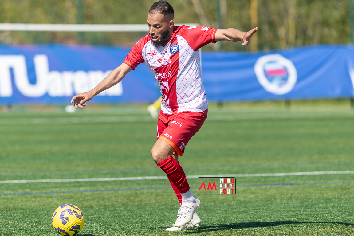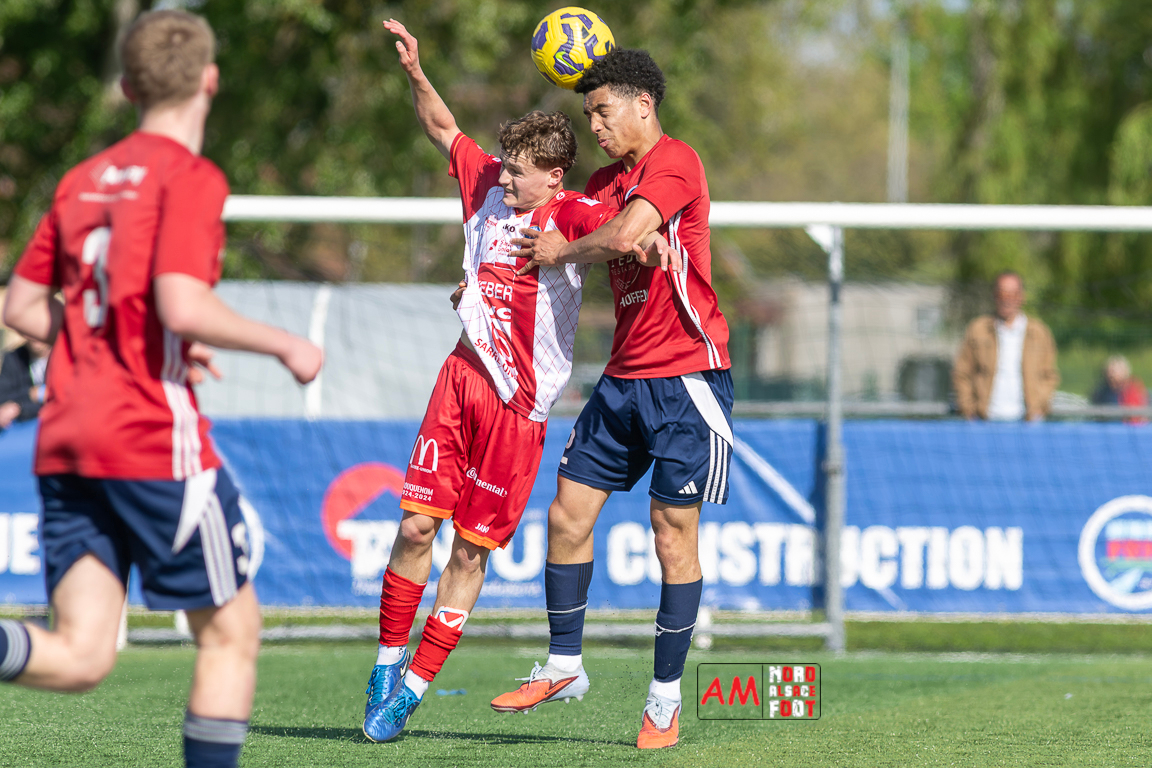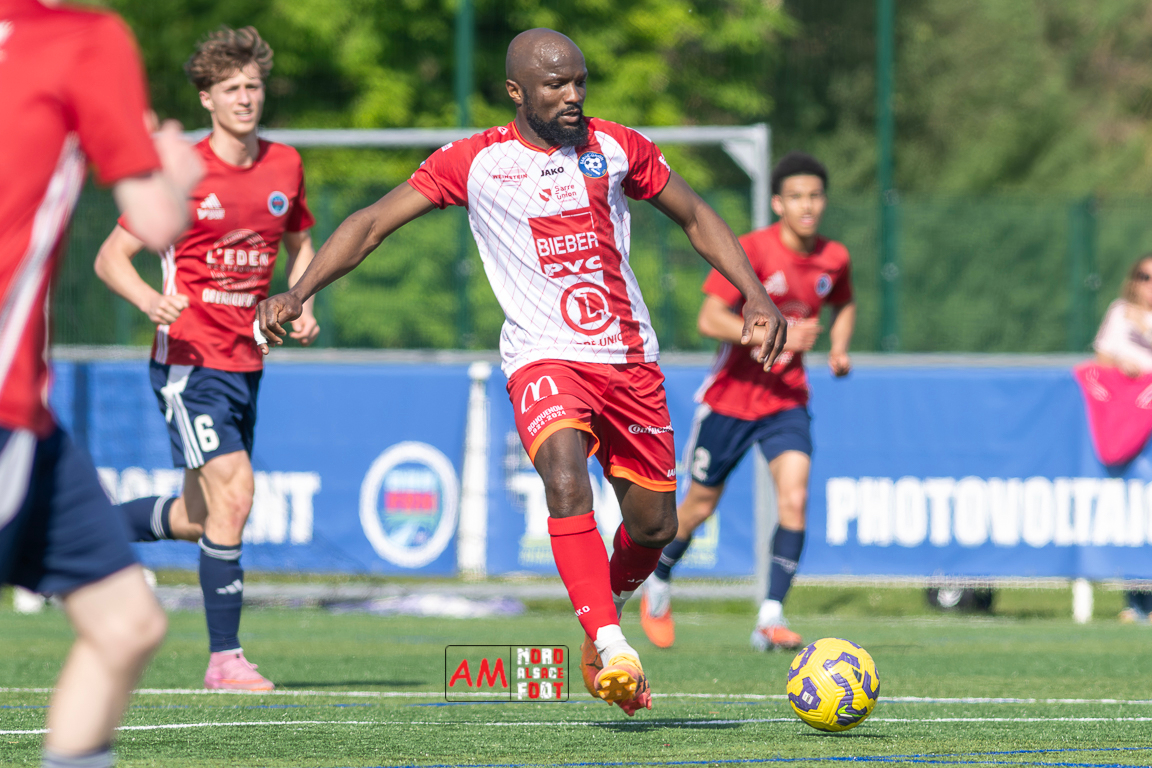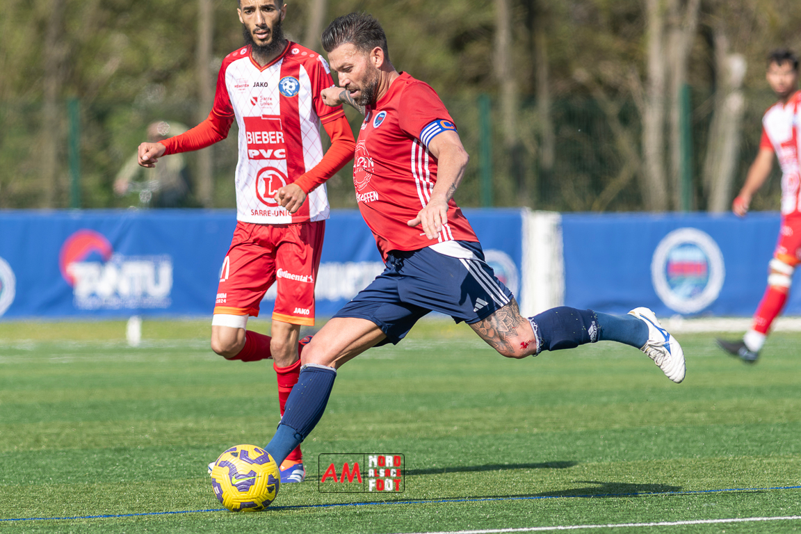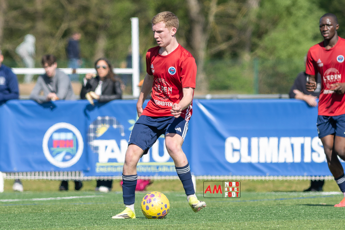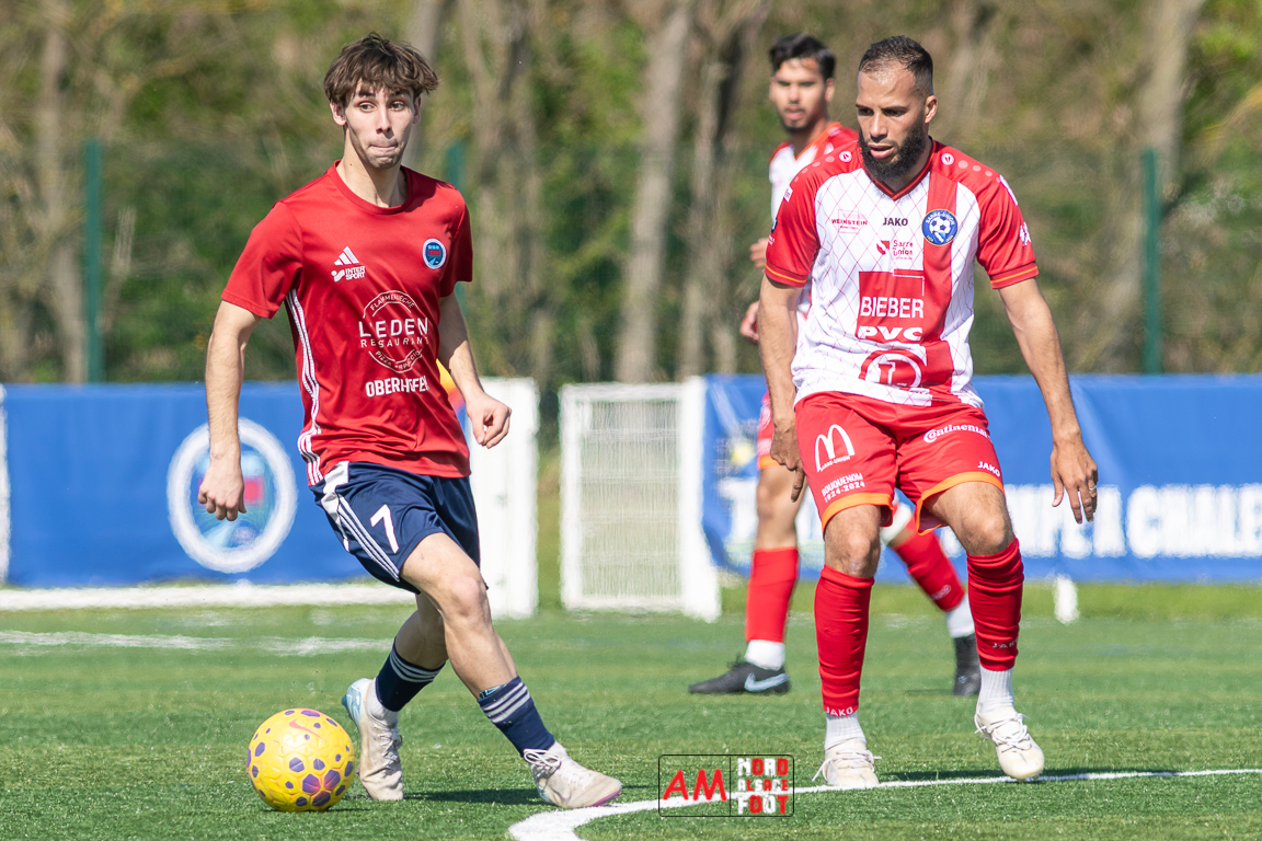 A l’occasion de la 22e journée de championnat en Régional 1 (Poule B), le FR Haguenau 2 (11e) accueillait l’US Sarre-Union (8e) afin de tenter de valider, au point près, leur maintien dans la division en faveur d’un succès, et ce, face à des adversaires pouvant encore jouer les places d’honneur. Après une première période se soldant par un léger avantage en faveur des visiteurs grâce à des réalisations signées Guendez Uzed (15e) et Aroustanov Robert (24e) contre une ouverture du score locale signée Klein Mathéo (7e), les visiteurs font le break à la 48e minute de jeu grâce à un doublé d’Aroustanov Robert avant que Mazroui Amine ne réduise la marque à la 59e minute de jeu, les deux équipes se neutralisant ensuite jusqu’au coup de sifflet final. Retrouvez, ci-dessous, quelques images de cette rencontre et, pour en apprécier le contenu, veuillez cliquer sur l’une d’entre elles pour afficher le diaporama.