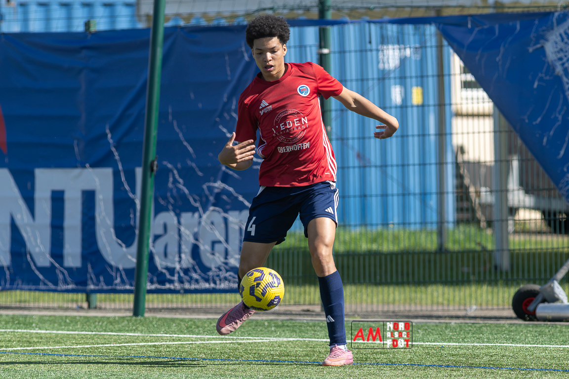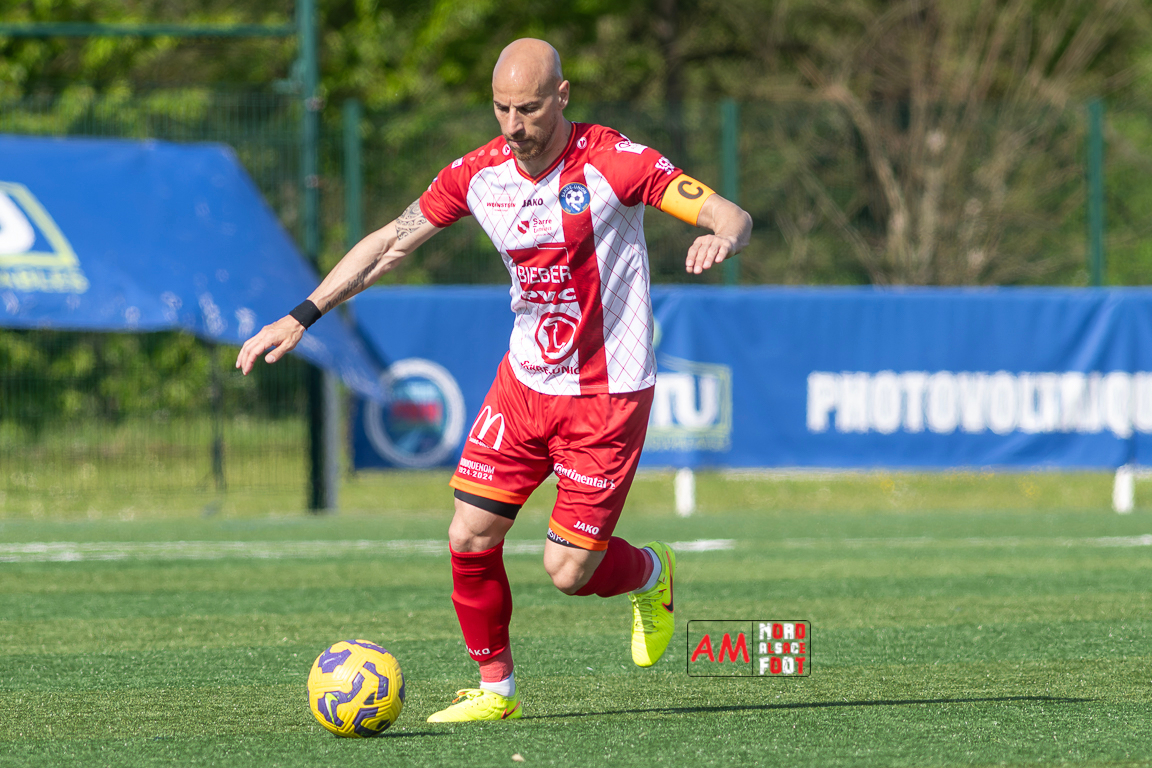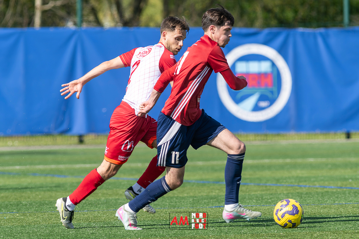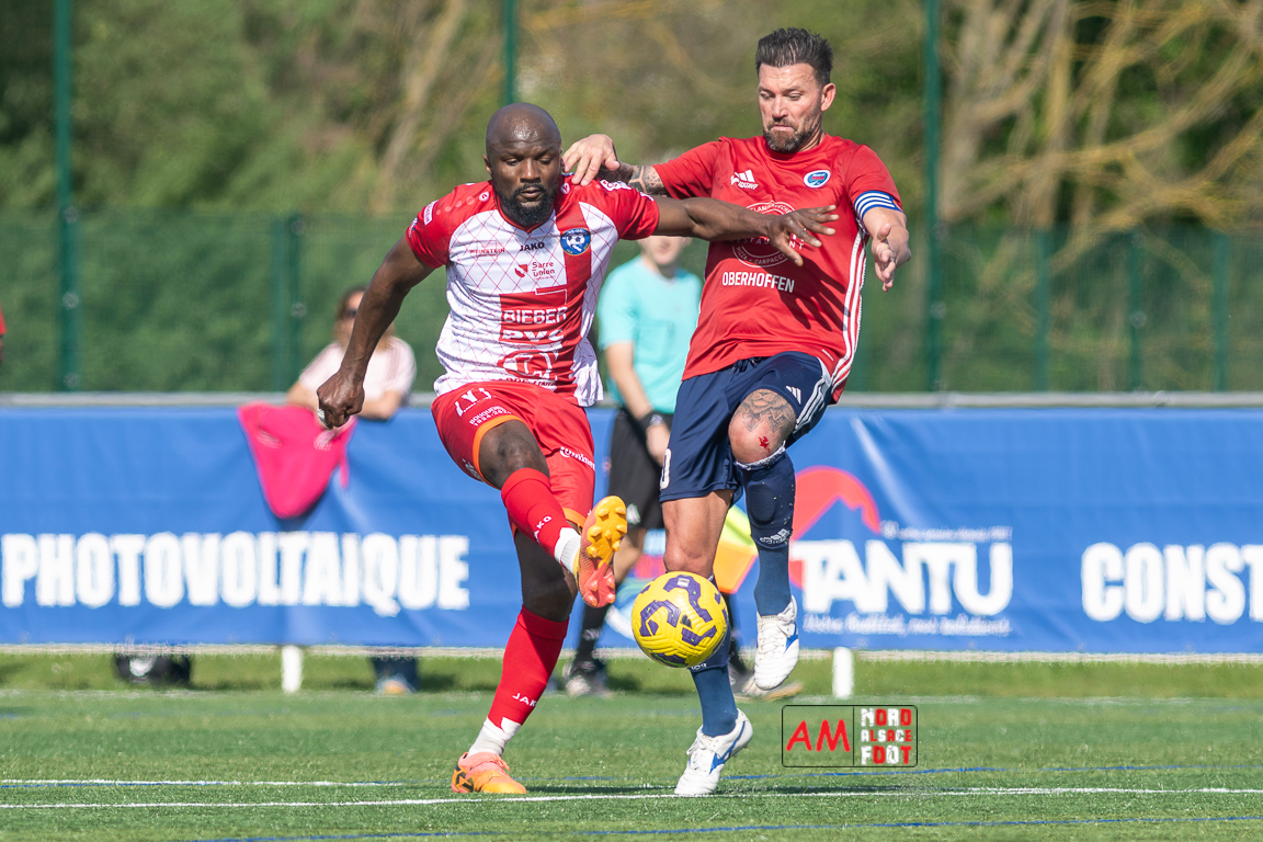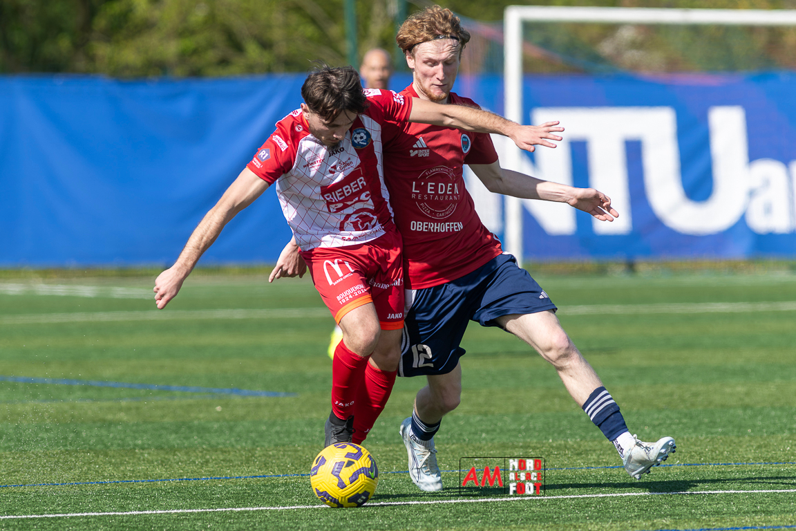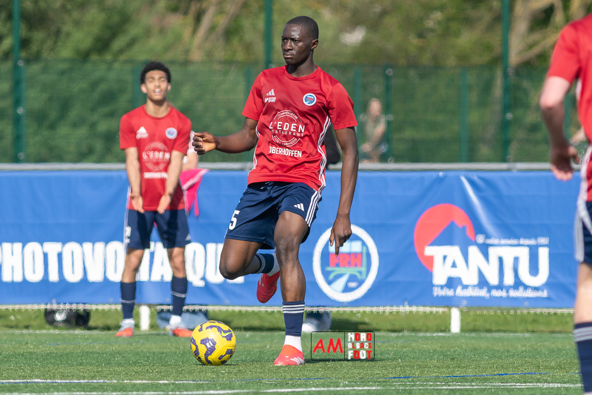A l’occasion de la 22e journée de championnat en Régional 1 (Poule B), le FR Haguenau 2 (11e) accueillait l’US Sarre-Union (8e) afin de tenter de valider, au point près, leur maintien dans la division en faveur d’un succès, et ce, face à des adversaires pouvant encore jouer les places d’honneur. Après une première période se soldant par un léger avantage en faveur des visiteurs grâce à des réalisations signées Guendez Uzed (15e) et Aroustanov Robert (24e) contre une ouverture du score locale signée Klein Mathéo (7e), les visiteurs font le break à la 48e minute de jeu grâce à un doublé d’Aroustanov Robert avant que Mazroui Amine ne réduise la marque à la 59e minute de jeu, les deux équipes se neutralisant ensuite jusqu’au coup de sifflet final. Retrouvez, ci-dessous, quelques images de cette rencontre et, pour en apprécier le contenu, veuillez cliquer sur l’une d’entre elles pour afficher le diaporama.
